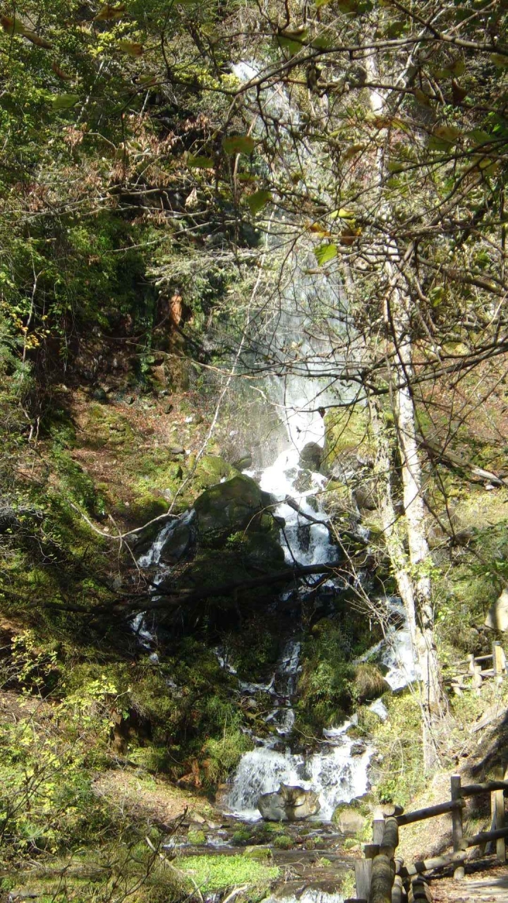 流れの水量は豊富とは言えないが、緑の渓谷に滝から落ちた水は、緩やかに流れ下る。