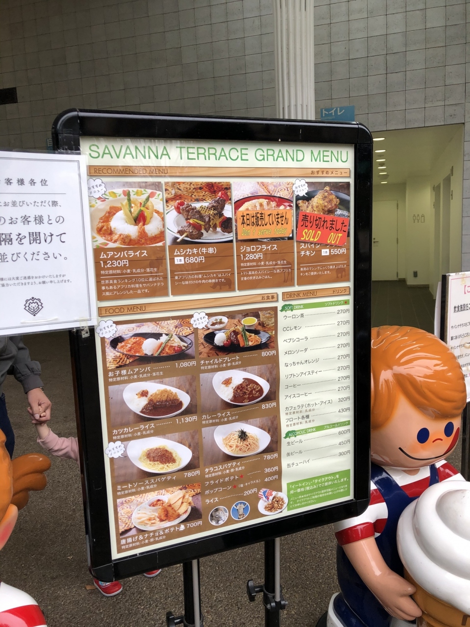 サバンナテラスはアフリカのサバンナエリアのカフェで、お食事メニューはわりと軽めのものが多いです。クロサイの説明タイムまで、こちらでコーヒーを飲んで時間調整しました。