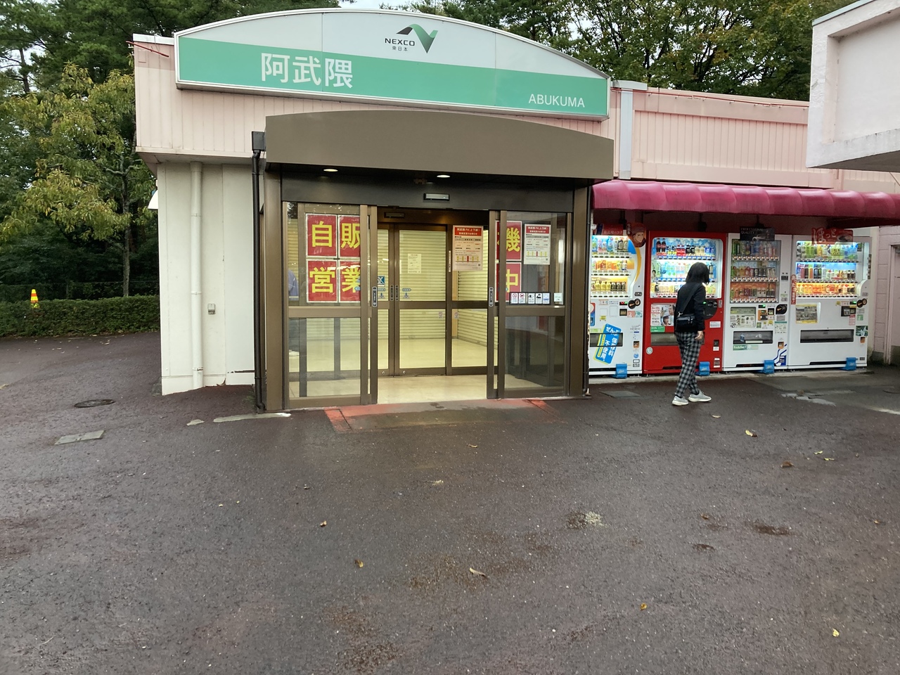 行きにもこのPAに止まりましたが、このPAはとても小さなパーキングで、下り線と同じで、ショップやフードコートはなく、自動販売機と飲食できるカウンターがあるだけでした。トイレの数も少なく、並んで順番待ちしました。