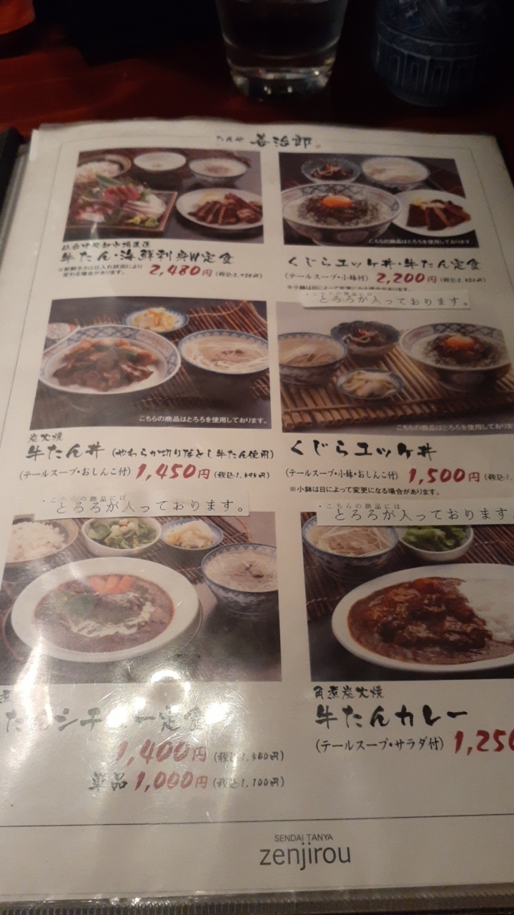 中身はご飯・テールスープの他、牛たん焼(4切れ)・牛たんつくね・牛たんソーセージ・刺身(この日はまぐろ・鯛・ぶり等)・サラダ又はとろろがついていて、値段は決して安くはないですが、牛たんも宮城の魚も両方楽しめたのは良かったです。