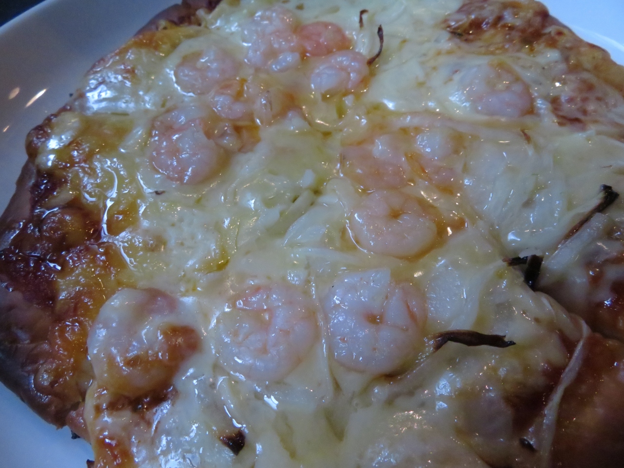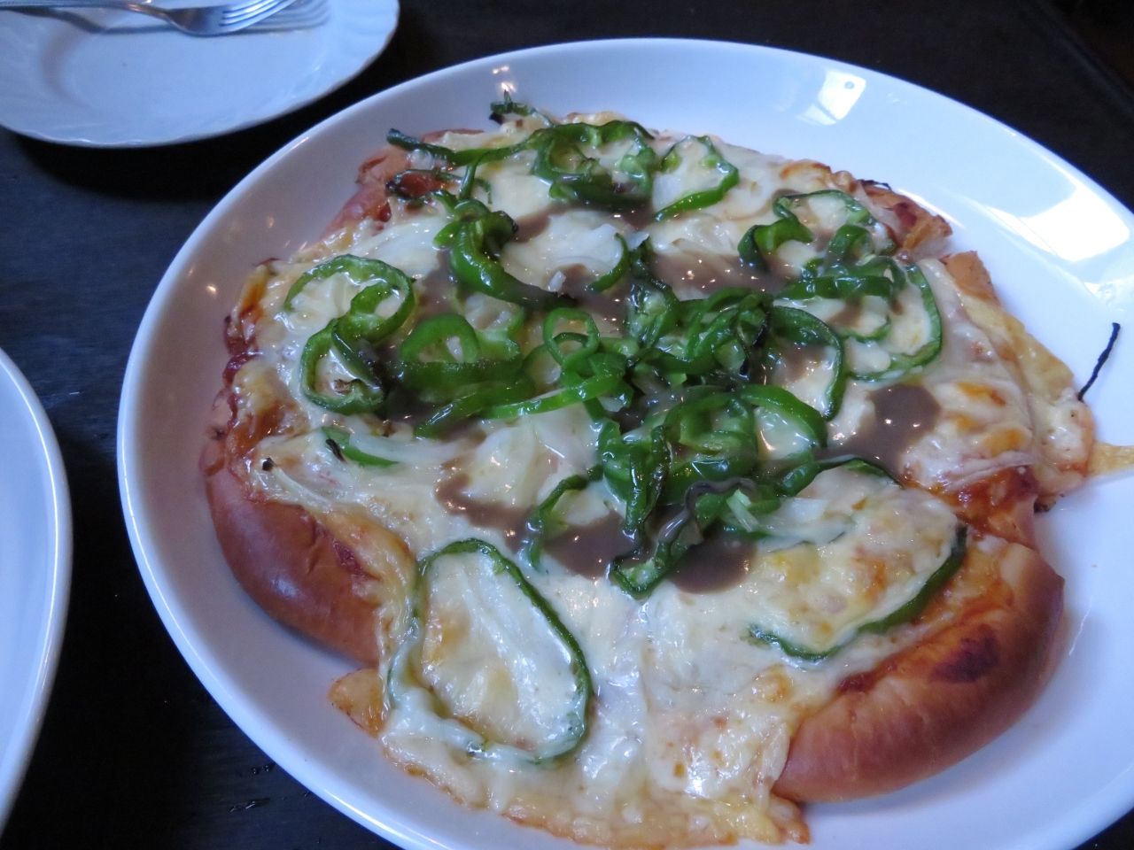従兄弟と一緒にいったので違う種類を注文して分け合いました。厚い生地のピザはお腹にたまります!そして美味しい。ちょうど、食べ終わった頃、混んで来たので、店を出ました。週末は行列ができるそうです。