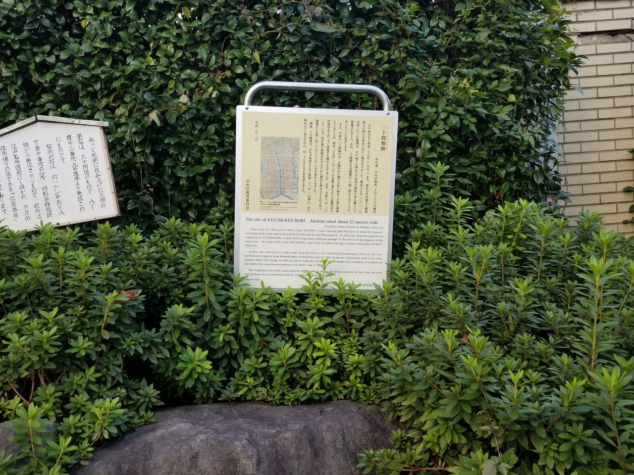 かつて京橋川と汐留川の間にあった運河で、幅が三十間あったことから、この名前がついたとのこと。