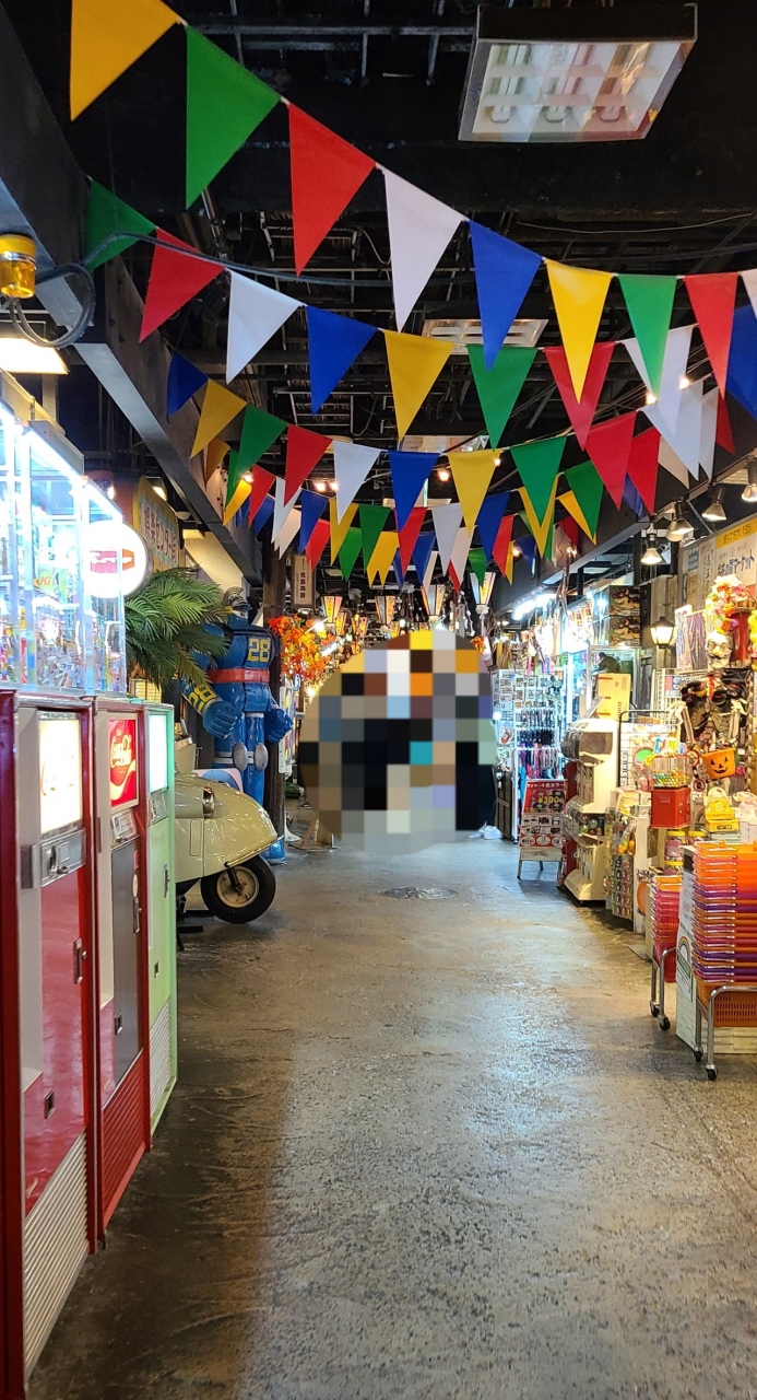 入り口からして懐かしい感じのゲームコーナーや駄菓子屋さん、昔の学校?(中に入るのは有料)などがあり昭和の子供時代をリアルに再現している感じですが、たまに今風のカフェもあったりします(笑)