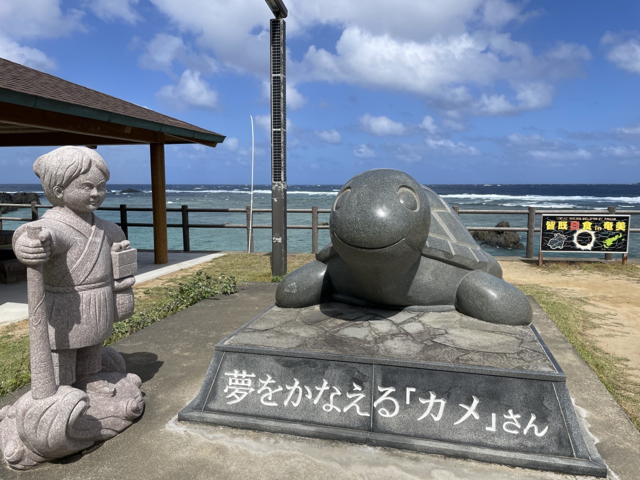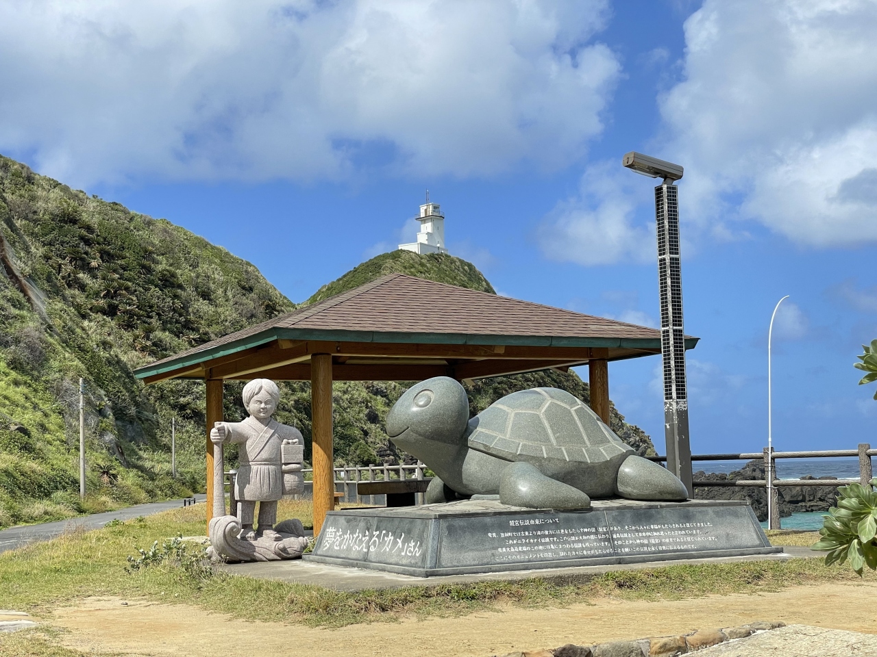 笠利崎灯台の下には夢をかなえる「カメ」さん像があります。