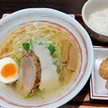 税込み千円のランチセットは麺が塩・醤油・辛味から選べ、日替わりおかずとごはんセットがついてきます。