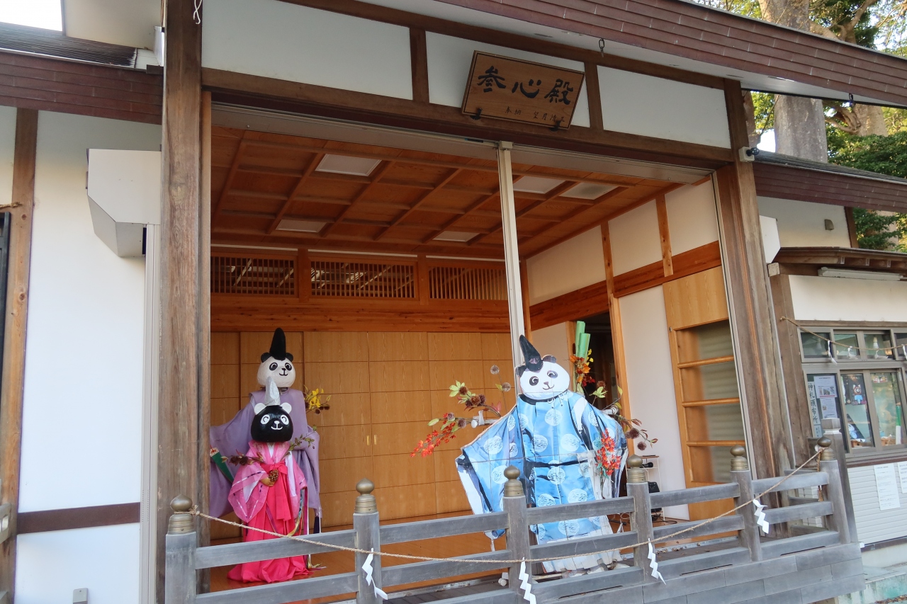 海老名駅の西、1km程の相模川に近いところの有鹿神社があります。有鹿神社は創建された年は不詳ですが、600年代には既にあり、相模十三社の式内社の中でも最古とされる神奈川最古級の神社です。訪れると小さな森をバックに拝殿があり、左手にある参心殿では何故かパンダ顔の宮司人形が置かれていて面白いです。古い神社にも関わらず、中々斬新なお神社でした。