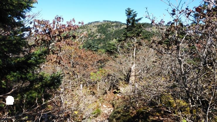 目的地である八経ヶ岳も少し距離を隔ててのぞむことができ30分ほどの道のりであるが、登り返しがあることや距離間などでもうひと踏ん張りと思わせる場所だった。電話が通じるので帰りのタクシーの配車を手配することができた。
