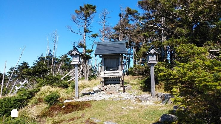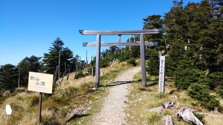 行者還トンネル西口より開始した登山は、ここに着く直前まで急坂の道のりとなるので、山小屋もあり平坦な地形の弥山に着くと少しホッとする。