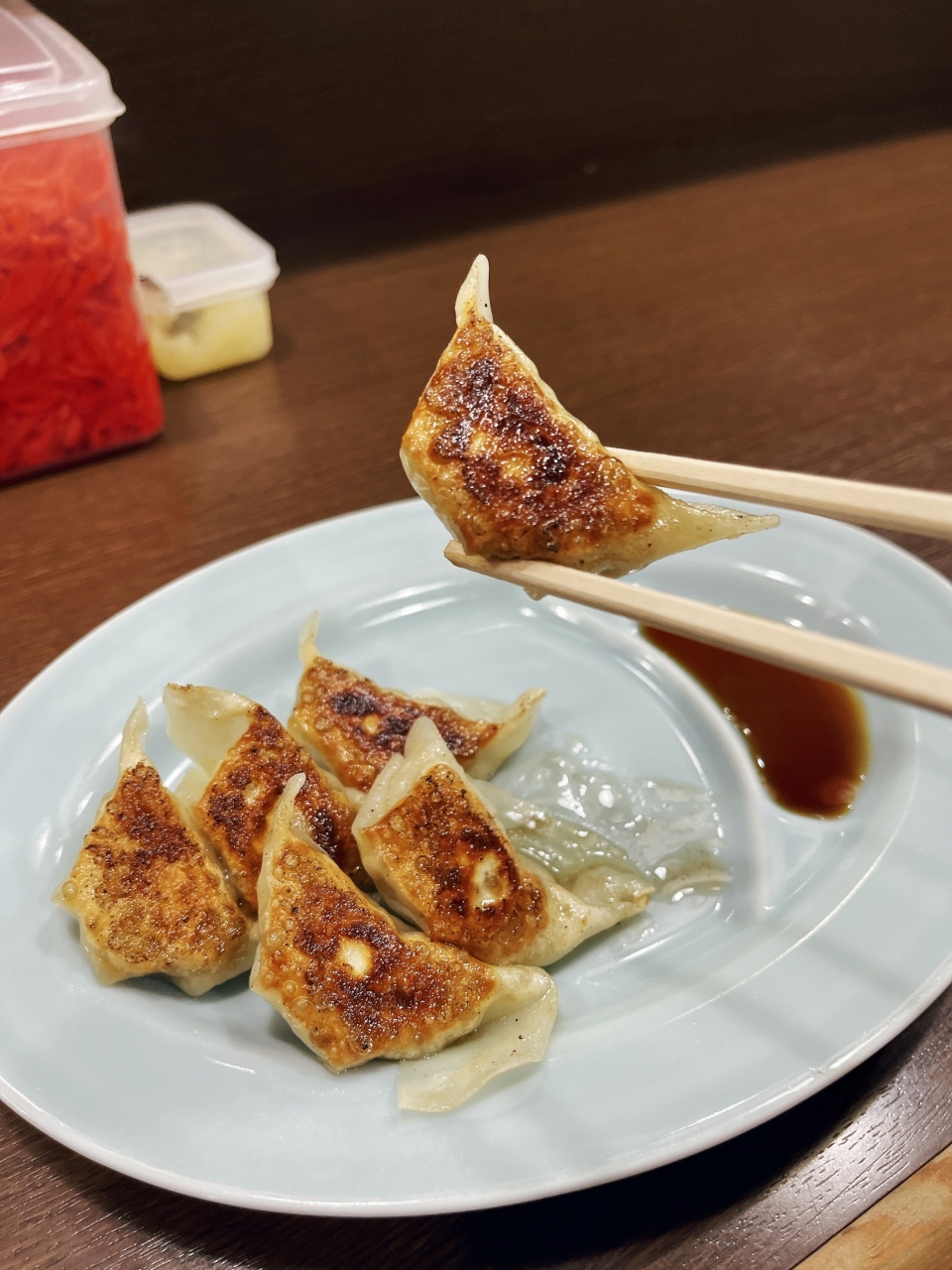 「餃子」はニンニクがバッチリ効いて美味しいかった〜豚骨ラーメンから餃子とレギュラーで訪れたいラーメン店です!ごちそうさまでした。