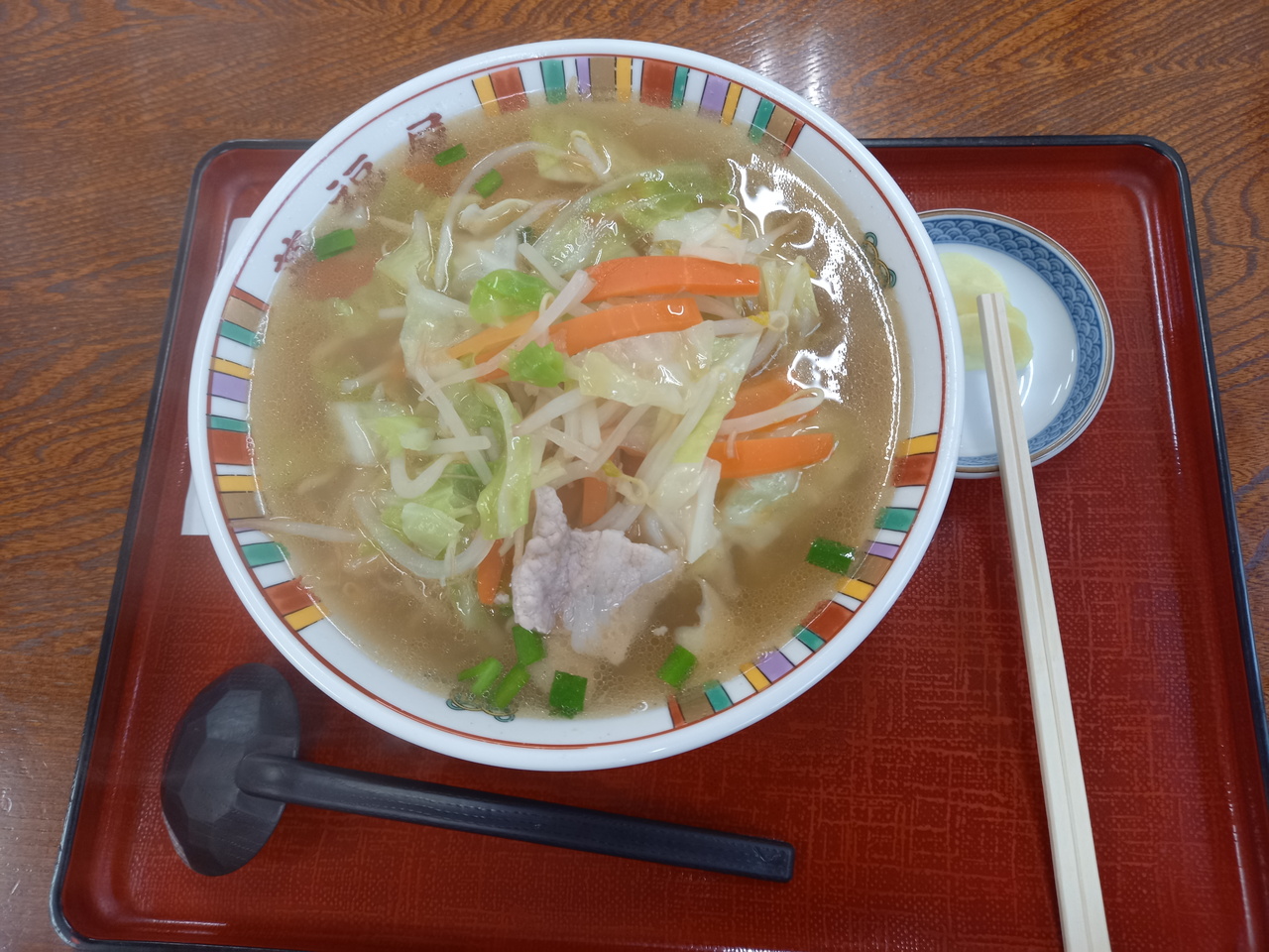 5ヶ月振りの来店です。前に、モヤシラーメンと味噌ラーメンをいただいたことがあるので、今回は違うタンメン700円をいただいてみました。タンメンの具はキャベツ、モヤシ、人参、玉ねぎ、肉と一般的でした。スープはいい塩味で、全部飲み干してしまいました。