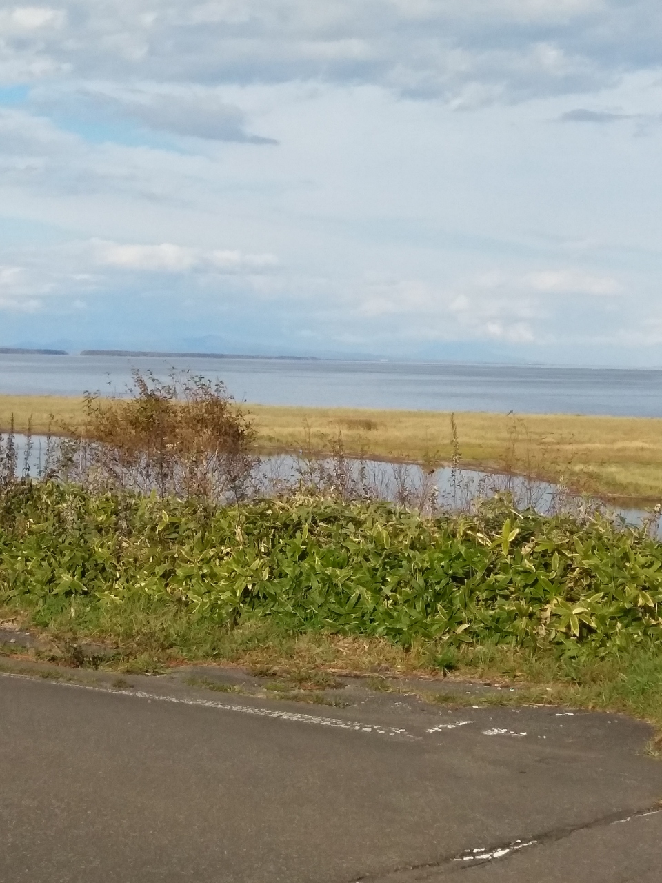 ここは野付湾にそそぐ春別川の途中の尾岱沼(おだいとう)に12月から3月にかけて数百匹の白鳥が来て絶景だそうです。行ったのが10月なので居ないはずです。