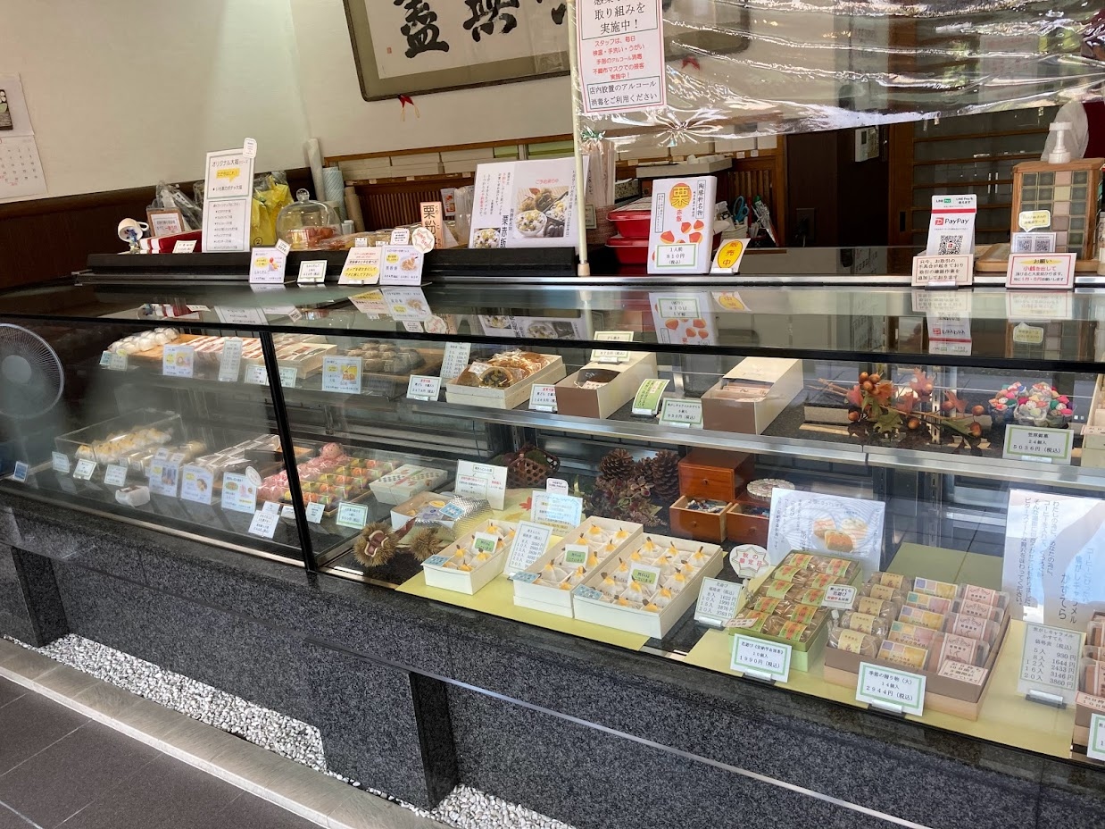 店内は、秋のお菓子のなごり柿や、栗きんとんが美味しそうに並んでいました。