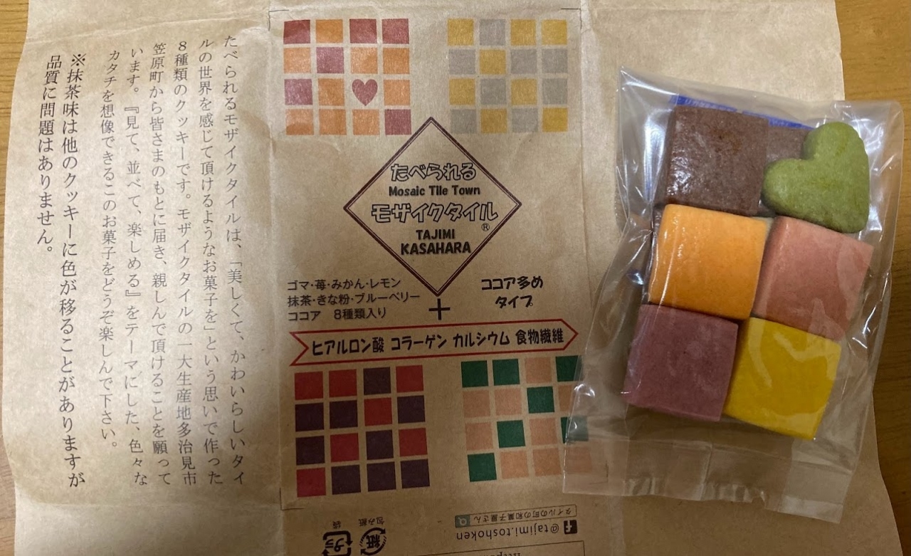今回は「たべられるモザイクタイル」のクッキーをお土産に購入しました。