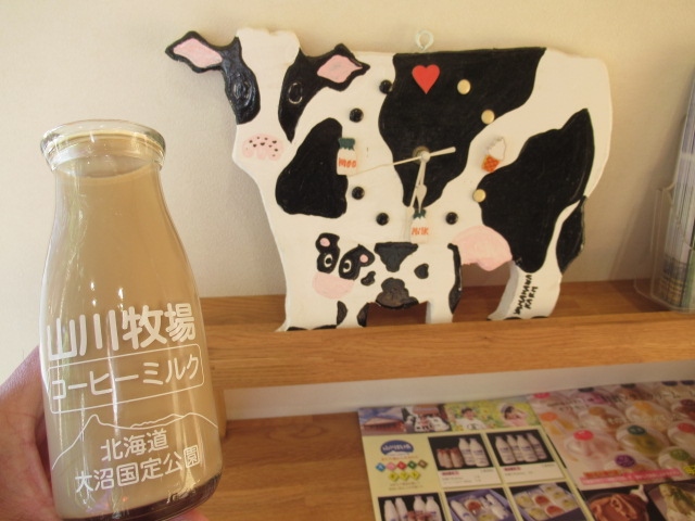 コロナの感染者は減少し緊急事態宣言も解除され、いよいよ行楽のシーズンとなり早々に函館までやってきました。広い北海道ではレンタカーで周遊するのが一番で紅葉が見頃の大沼湖へと足を運びました。国道沿いを走っていると山川牧場ミルクプラントがあり休憩することにしました。館内にはテーブルもありコーヒーミルクをいただきましたが濃厚で後引く旨さがあり北海道らしさを感じましたね。値段は180円でビン返却で40円の返金がありますが記念に持ち帰っても良いでしょうね。カレーライスやお弁当の販売もしているようで人気のハンバーグ弁当が美味しいと評判のようです。牛乳飴が3種類ありましたが一番可愛いお土産に購入。また併設するところには牛舎があり牛が沢山いて見ることもできますよ。