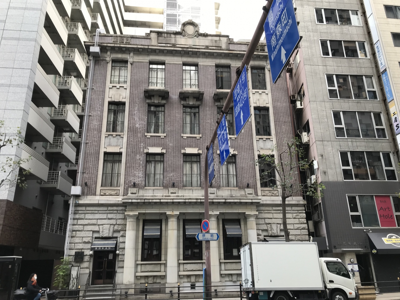 大阪地下鉄北浜駅から徒歩3分、堺筋にあるレトロな建物です。この建物は1922年(大正11年)に報徳銀行大阪支店として建てられた鉄筋コンクリートの4階建てのビルです。
