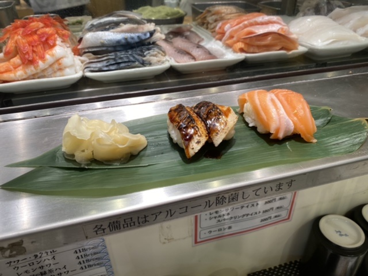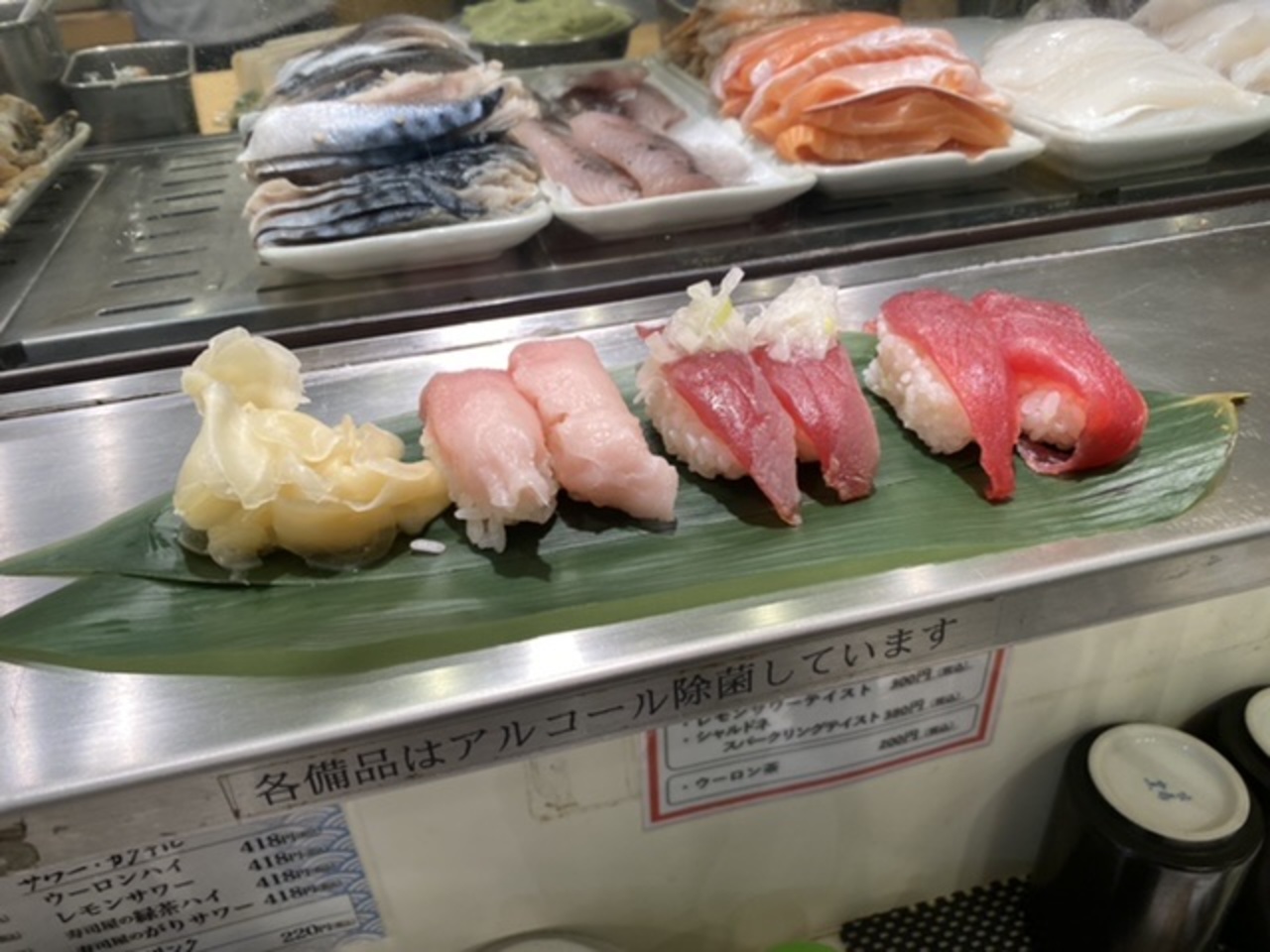 食べたのはまぐろ、かつお、びんちょう、あなご、サーモンを2貫ずつの計10貫!朝は寿司でしょ!?