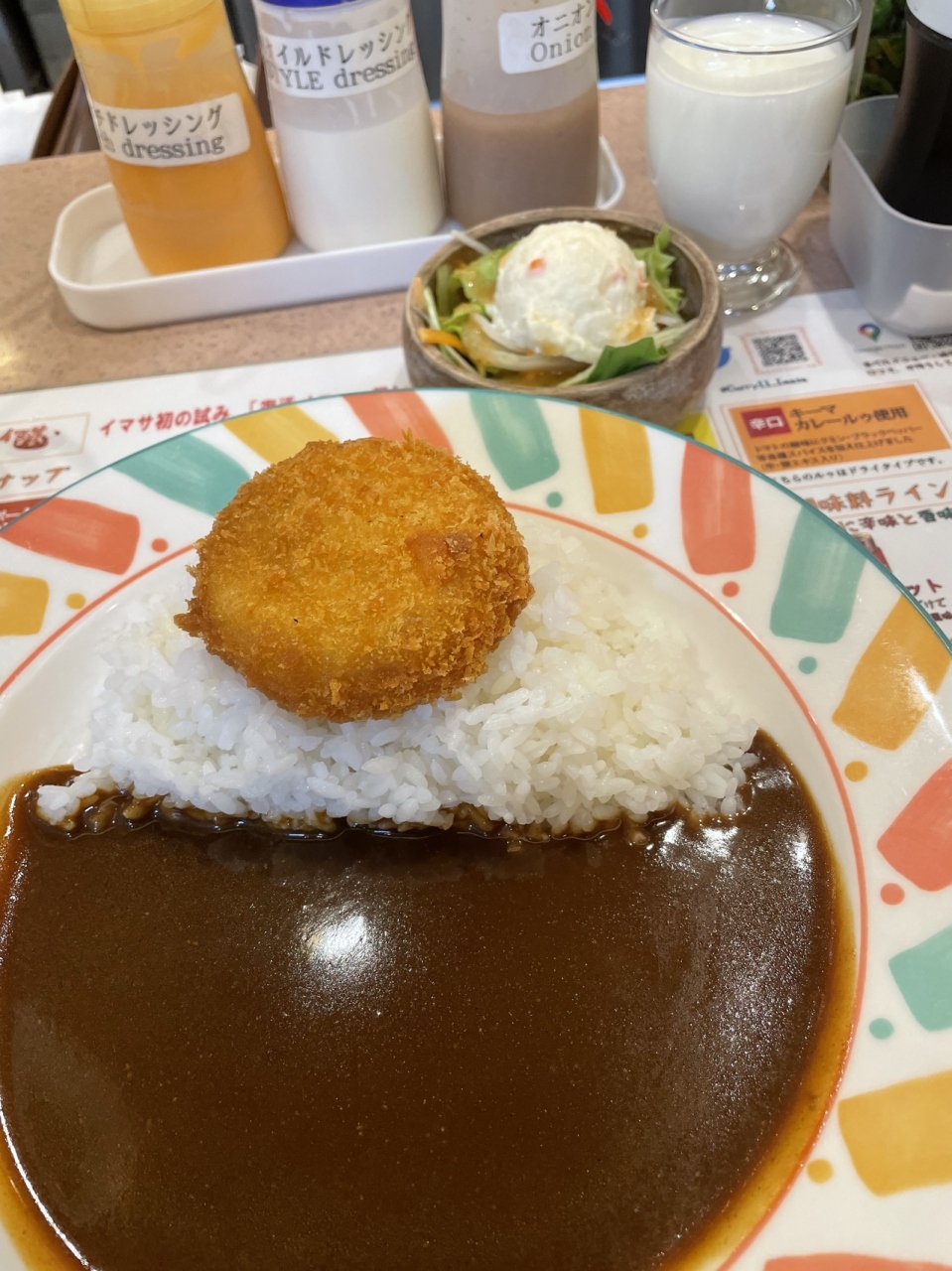 朝ごはんに何を食べるか迷ってイマサに入りました。朝カレーをやっているのは知らなかったので朝は初めてでした。朝カレーはサラダ、ラッシーがついている。さらにカレーもチキン、ポーク、ビーフから選択できます。