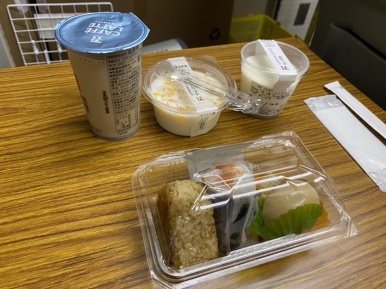 買ったのは焼きおにぎりと辛子明太子のおにぎりのお弁当620円!煮卵半分と煮物が付いてますよ。