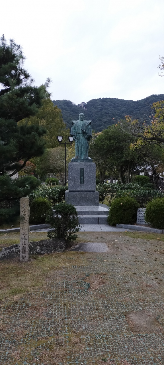 錦帯橋を岩国城側に渡り、吉香公園の方に向かう途中にある銅像です。錦帯橋をつくった偉業を称えて作られた像だそうです。顔は、写真がなかったので、子孫や他の代の方の写真の合成を利用して作られたそうです。錦帯橋を渡ったエリアはすべて吉川家にまつわる場所で当時の栄華を感じました。