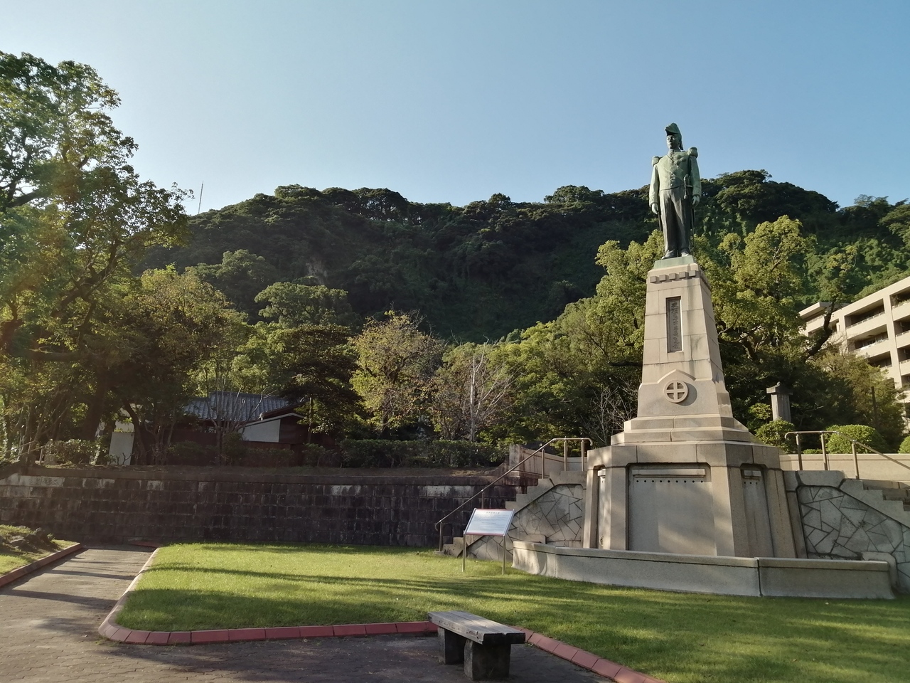 鹿児島城二之丸の庭園跡です。当時はとても素晴らしい庭園だったようです。現在も庭園の体裁は取られていますが、それにしてもあちこちに銅像やら記念碑があり過ぎ。無理やり詰め込んだ感は否めません。一応、見どころと言えるのは島津斉彬が本丸と電信の実験を行った「電信使用の地の碑」と明治維新に大きく貢献した島津久光公・忠義公父子の銅像のようです。