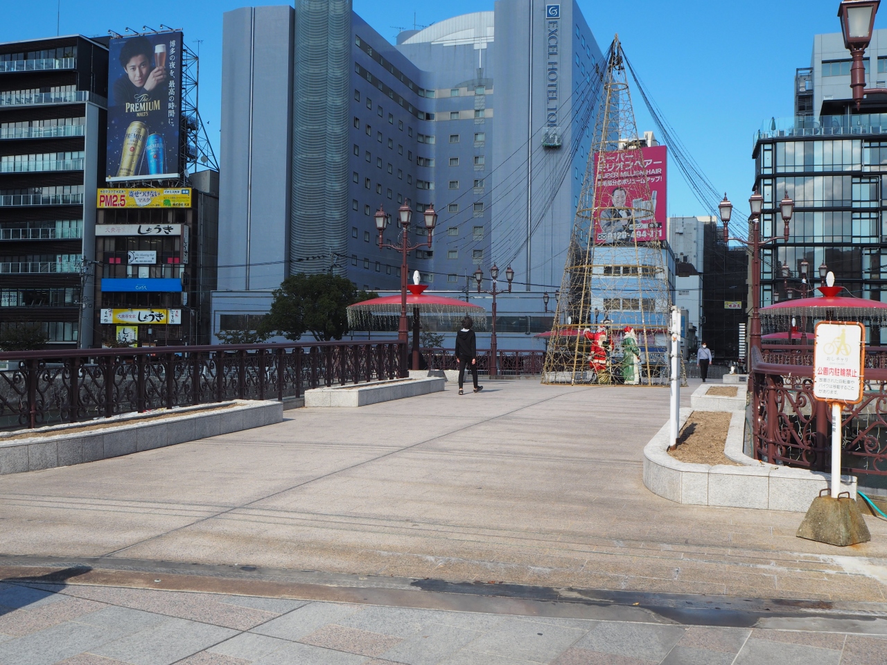 福博であい橋は天神中央公園から中州へと渡る那珂川に架かる橋す。歩行者専用の橋で、橋の中央の2カ所には円状の広がった場所があり、休憩や景色を眺めるなどができるようになっています。またベンチもあるのでゆったり時間を過ごすのも可能です。昼間も多くの人が歩いている橋です。