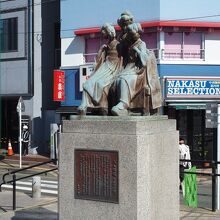 那珂川に架かる福博であい橋の中州側のたもとに三人舞妓像があります。福岡の街を歩いているとオブジェなどが少ない印象があったので、こちらは興味深く見ました。これは1925年にパリ万博に出品された小島与一氏の作品がベースになっているそうです。3人の舞妓とも魅力的な人たちです。