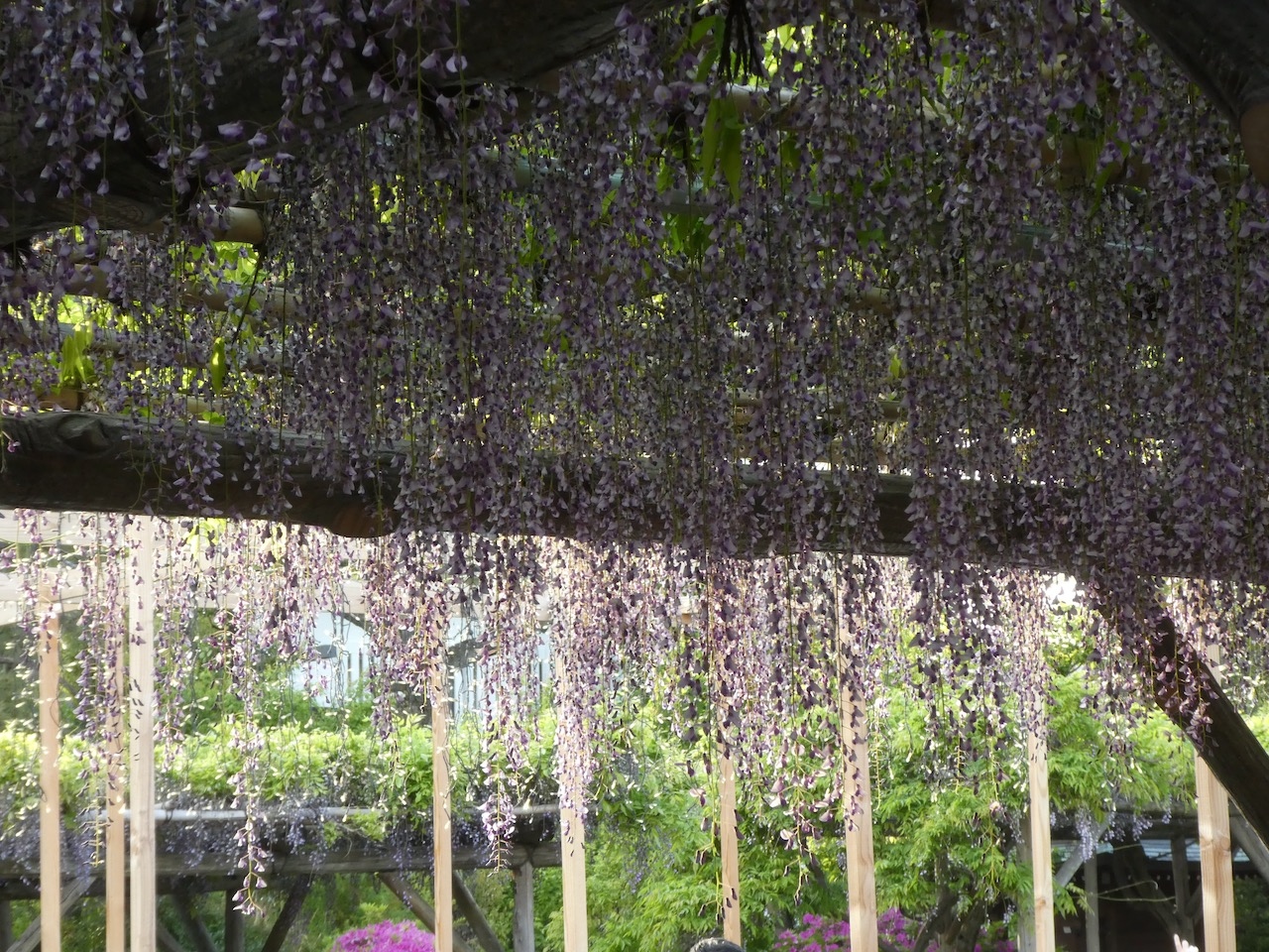 ところで、昔は藤の花の盛りはゴールデンウィークだったと思いますが、4月26日に行ったところ、もう散り終わってました。藤の花は咲き始めはあまり豪華な感じがしないので鑑賞期間は短め。なので開花情報を毎日入手してチェックしておきましょう。