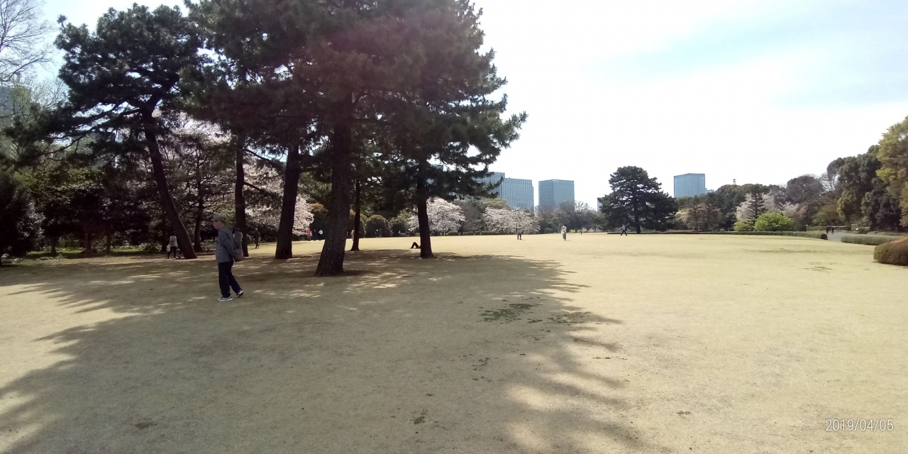日本の最高の観光時期は、春の桜が開花する時期と秋の紅葉の時期で、絶対おすすめです。添付写真のように、皇居東御苑のソメイヨシノの花が満開で、最高でした。まだ冬のような芝生もとてもよく手入れされていて感動しました。