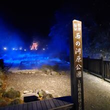 湯畑や、西の河原のライトアップか
