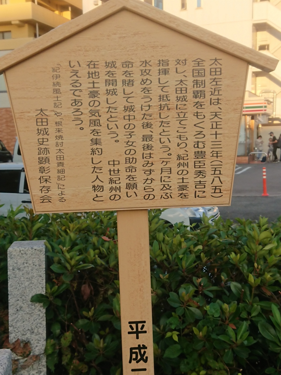 秀吉の日本三大水攻めの一つとして備中高松城と忍城とともに一部の戦国時代ファンには有名かと。左近様も頑張りましたが、最後は自刃ということで、その記録が和歌山駅にひっそりと掲げられております。