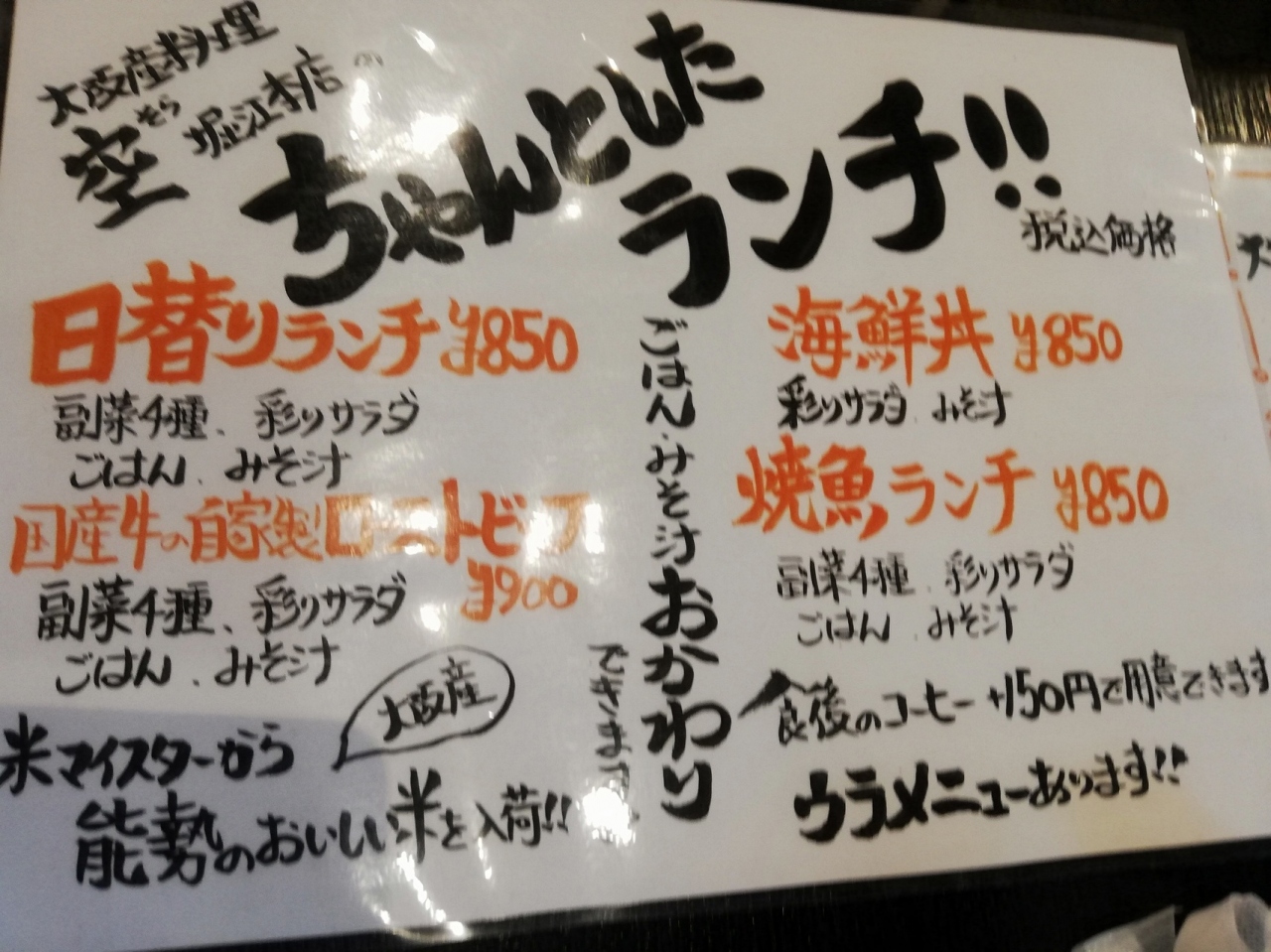 定食はおかずの種類が豊富で、これで850円とはお得に感じました。味もすごく美味しかったです。ただ、どの食材が「大阪産」ブランドなのかわからなかったので、はっきり「大阪産」を食べたい方はグランドメニューから選ぶほうがいいのかなと思いました。