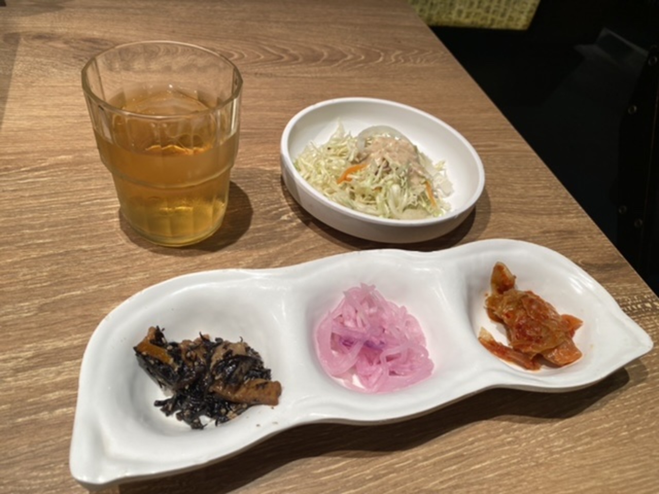 食べたのは韓国冷麺!サラダ、バンチャン、キンパが付いています。お酢を大量にかけて美味い(^^)