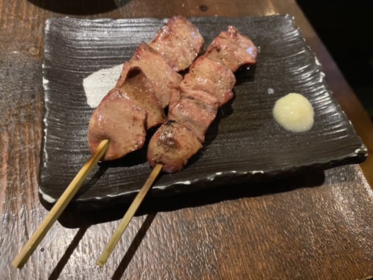 まずは生ビール!そして串はつくねのお月見に白レバー、そして牛すじ煮込みを。赤兎馬の紫はボトルでロック。〆は山芋のたまり醤油漬け。