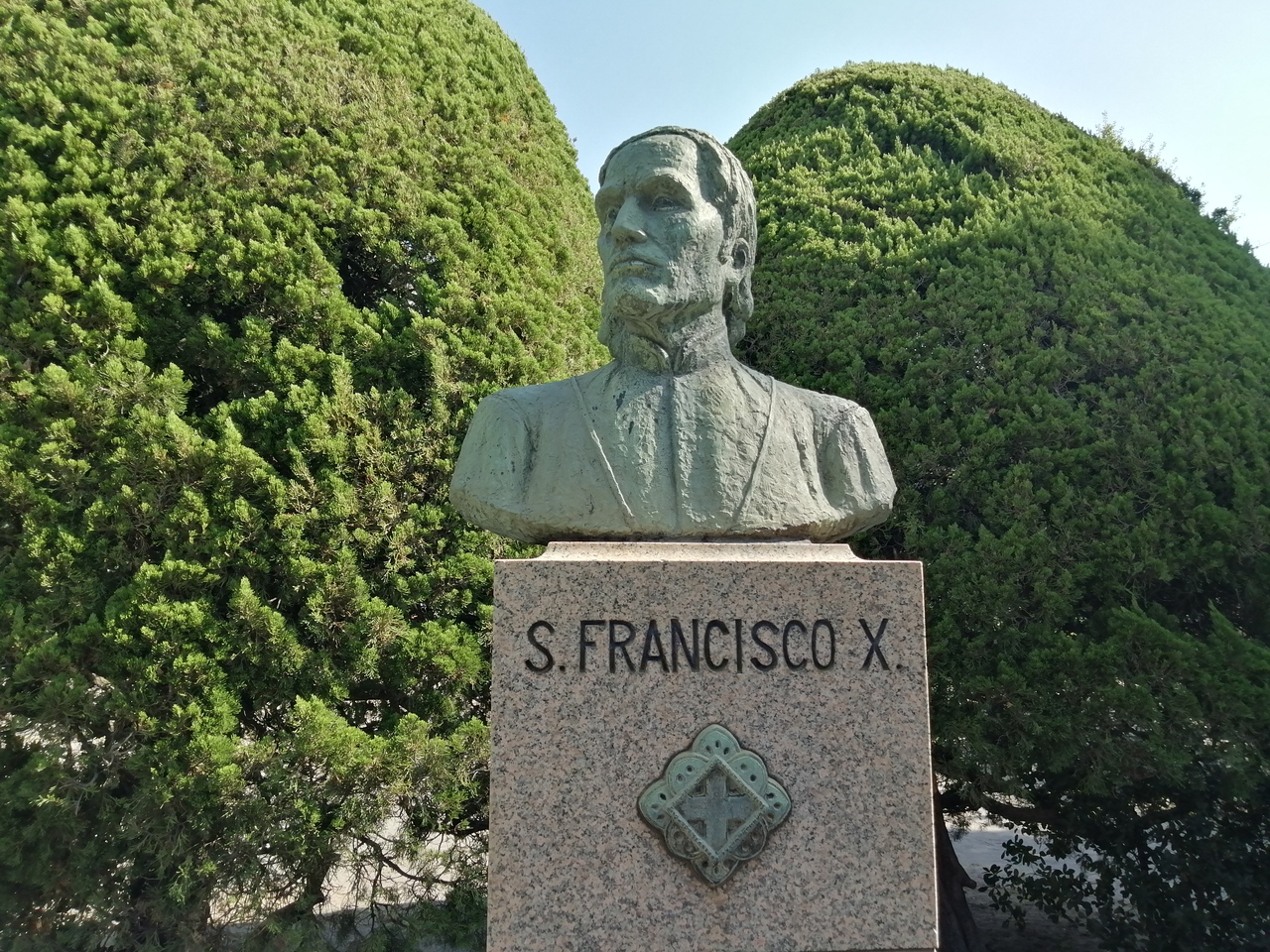 記念碑に比べザビエルの胸像が小さく不釣り合い感を感じますが、ちゃんと同じ公園内に等身大の銅像が建てられています。