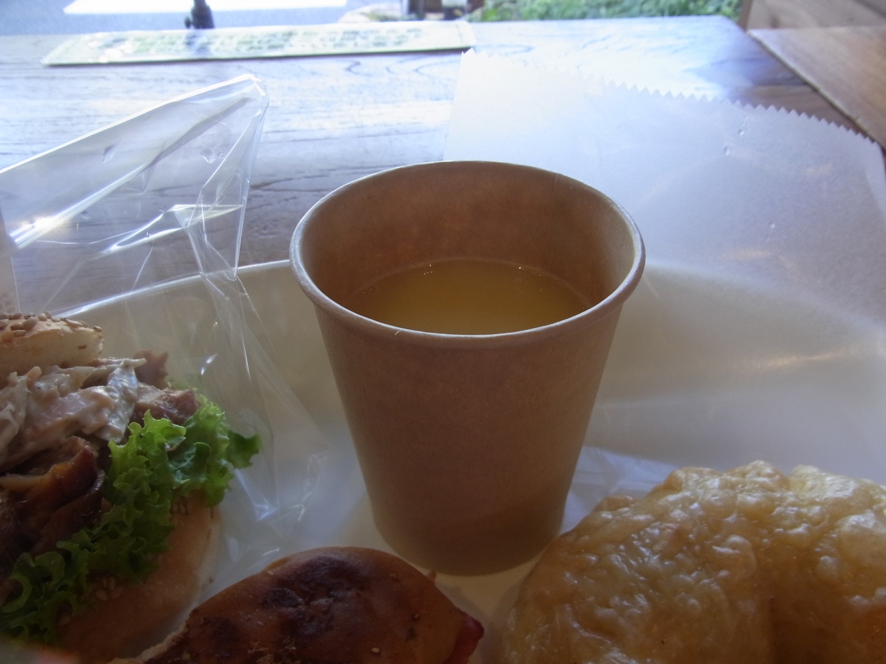 ドライブ途中に看板を見つけてたどり着いたので、便利なところにあるのか、人里離れたところにあるのかは定かでない。西山荘(せいざんそう)という名前だからパン屋さんにしては珍しいが、パン工房とあるので間違いはなかろうとナビに入れました。焼きたての美味しそうなパンが次々に並べられます。店内のイートインの部屋も綺麗で雰囲気が良い。紅茶とコーンスープは無料で頂けます。駐車場も広いです。