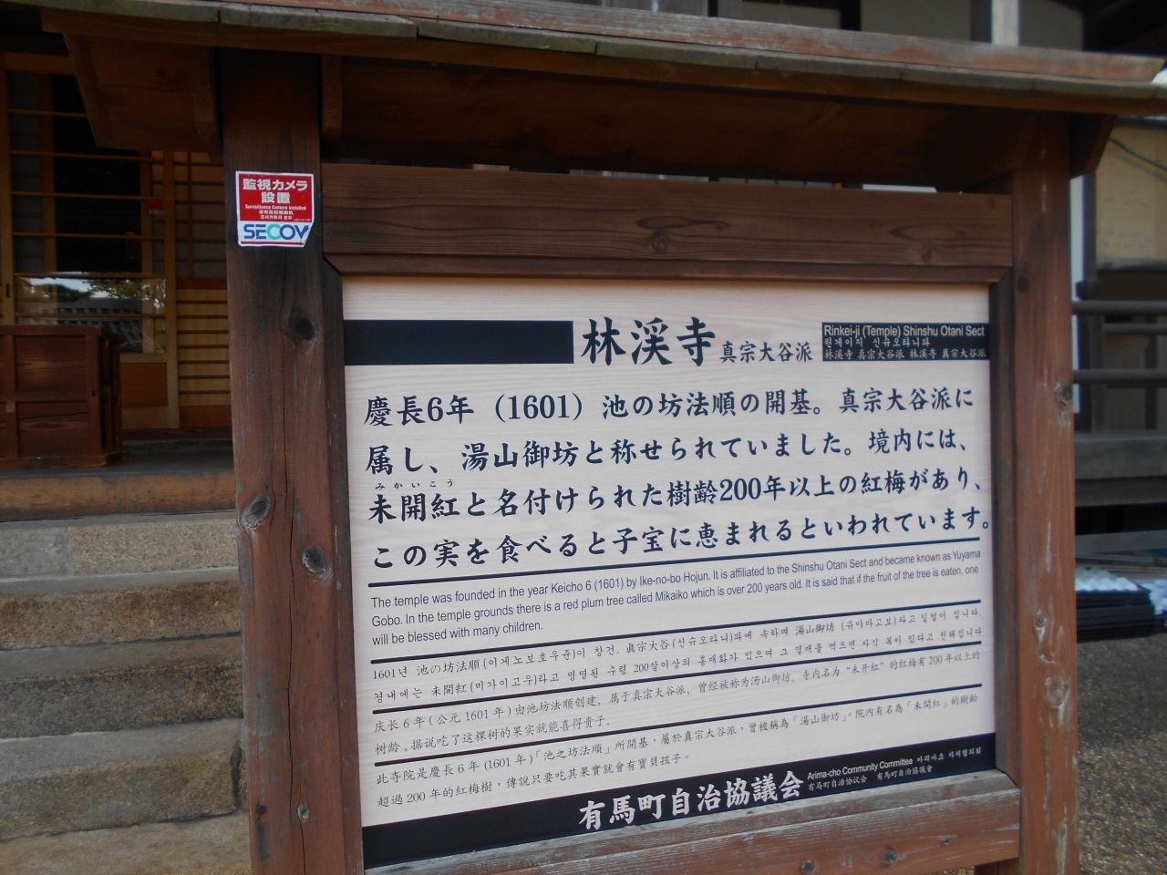 関西の奥座敷「有馬温泉」のメインストリート湯本坂の東側に建つ真宗大谷派寺院。江戸時代には東本願寺の別院で「湯山御坊」と呼ばれていたそうです。湯本坂からの石段の参道が美しいです。境内には樹齢二百余年の紅梅が満開の時期には美しいそうで、子宝に恵まれる御利益があるそうです。
