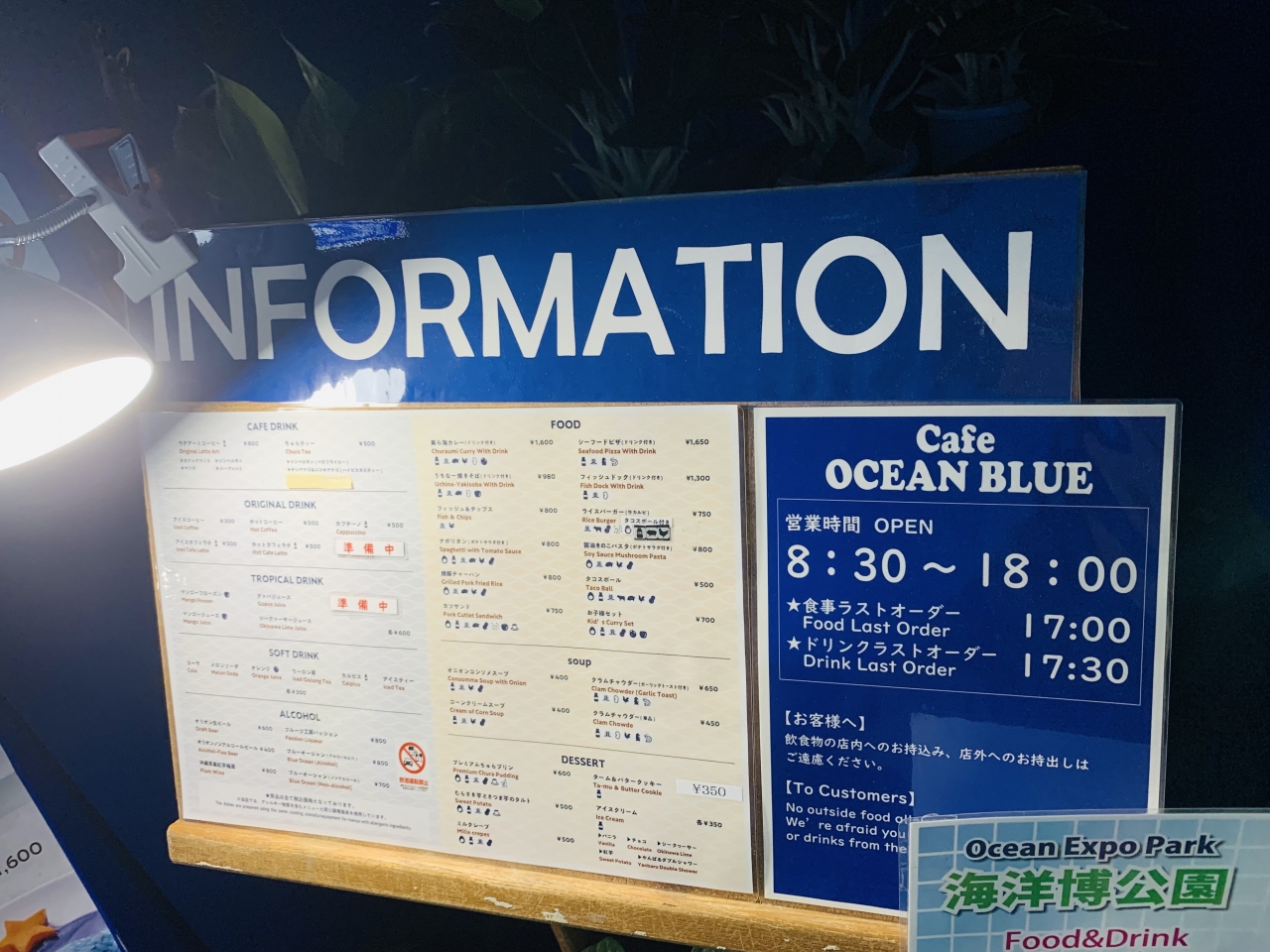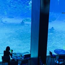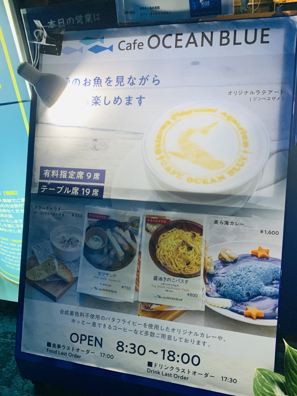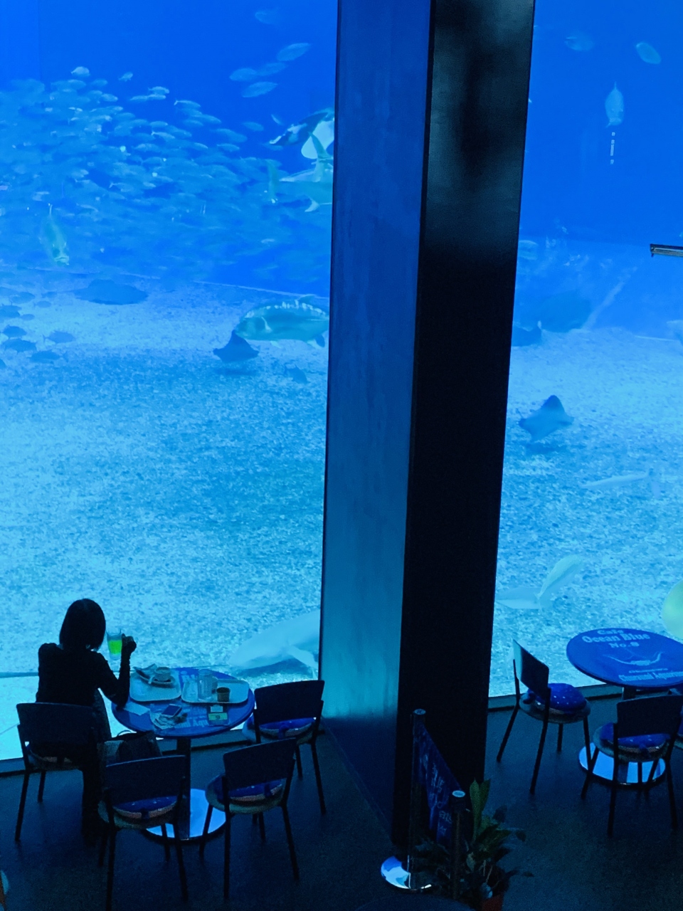 沖縄美ら海水族館の 水槽のお魚を見ながら…カフェ オーシャン ブルー