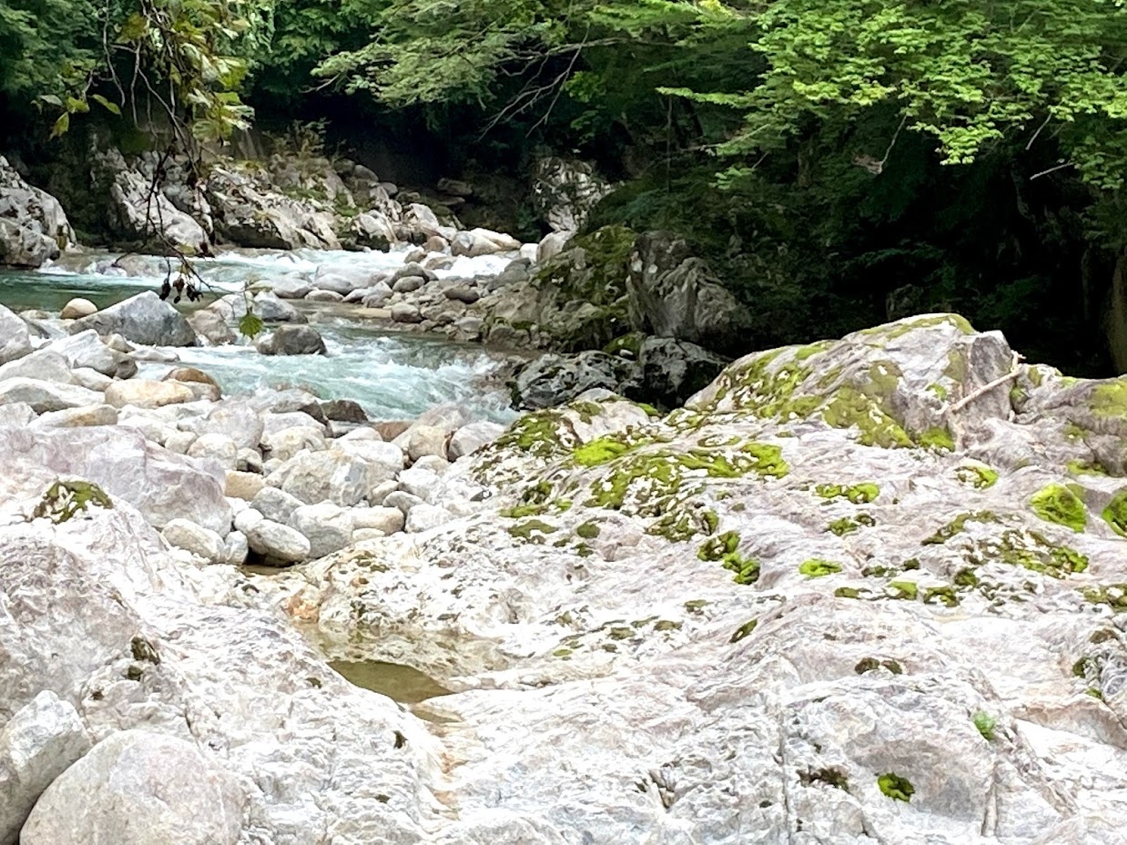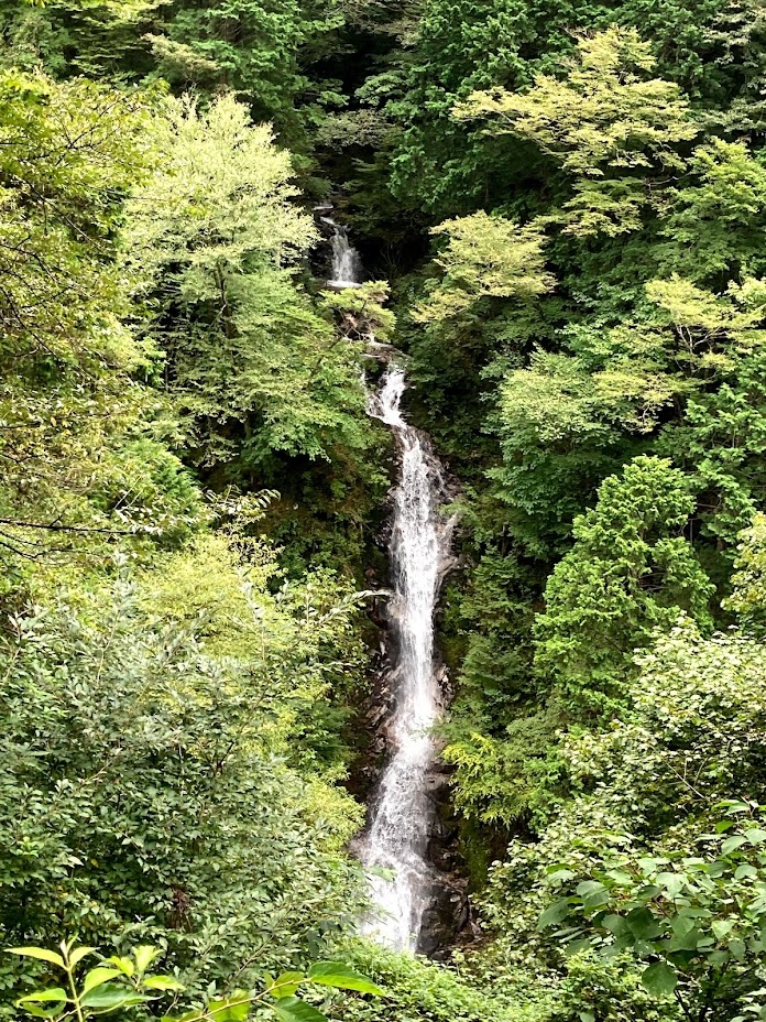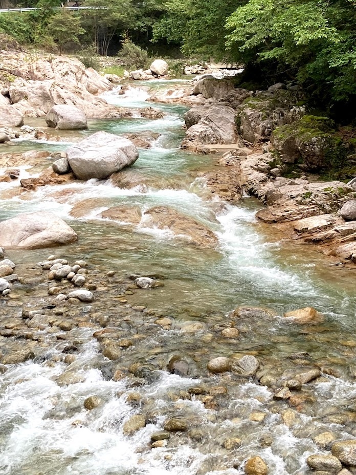 大船神社・弁慶杉に向かう途中に渓谷沿いをドライブしました。細い道も多いですが、自然たっぷりで、水もとっても綺麗で癒される景色でした。櫃ヶ沢の甌穴や滝などもありました。秋の紅葉がとても楽しみな場所だと思います。
