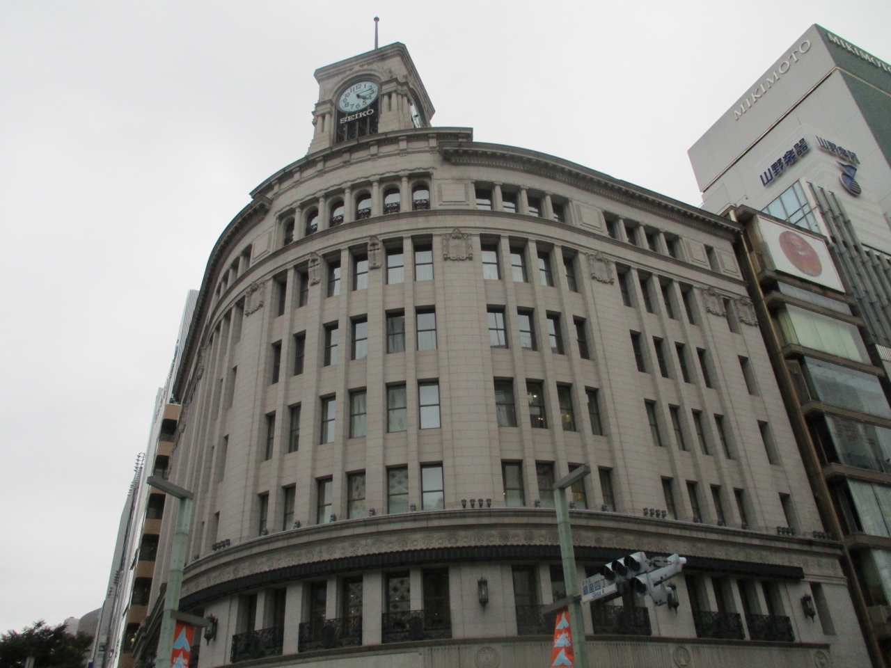 銀座のメインストリートです。有名ブランド店や老舗の百貨店、専門店などが軒を連ねています。日曜日は歩行者天国で、一定区間が通行止めになっていました。初めて歩行者天国を体験しました。大通りを堂々と安心して歩けるのでよかったです。歩行者天国は夕方までで、夜はまた車が走っていました。