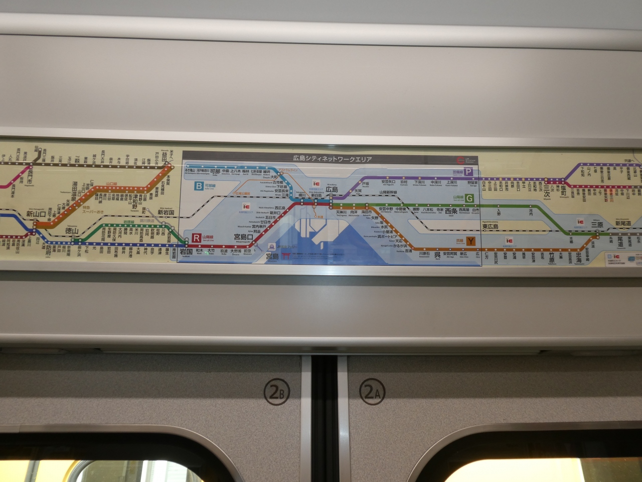 中国地方の山の中をこの区間は走りますが水害の被害が彼方此方に垣間見えました。後は大都市広島駅前後では大変込み合ってましたがその区間を越えると落ち着いた車内です。