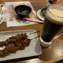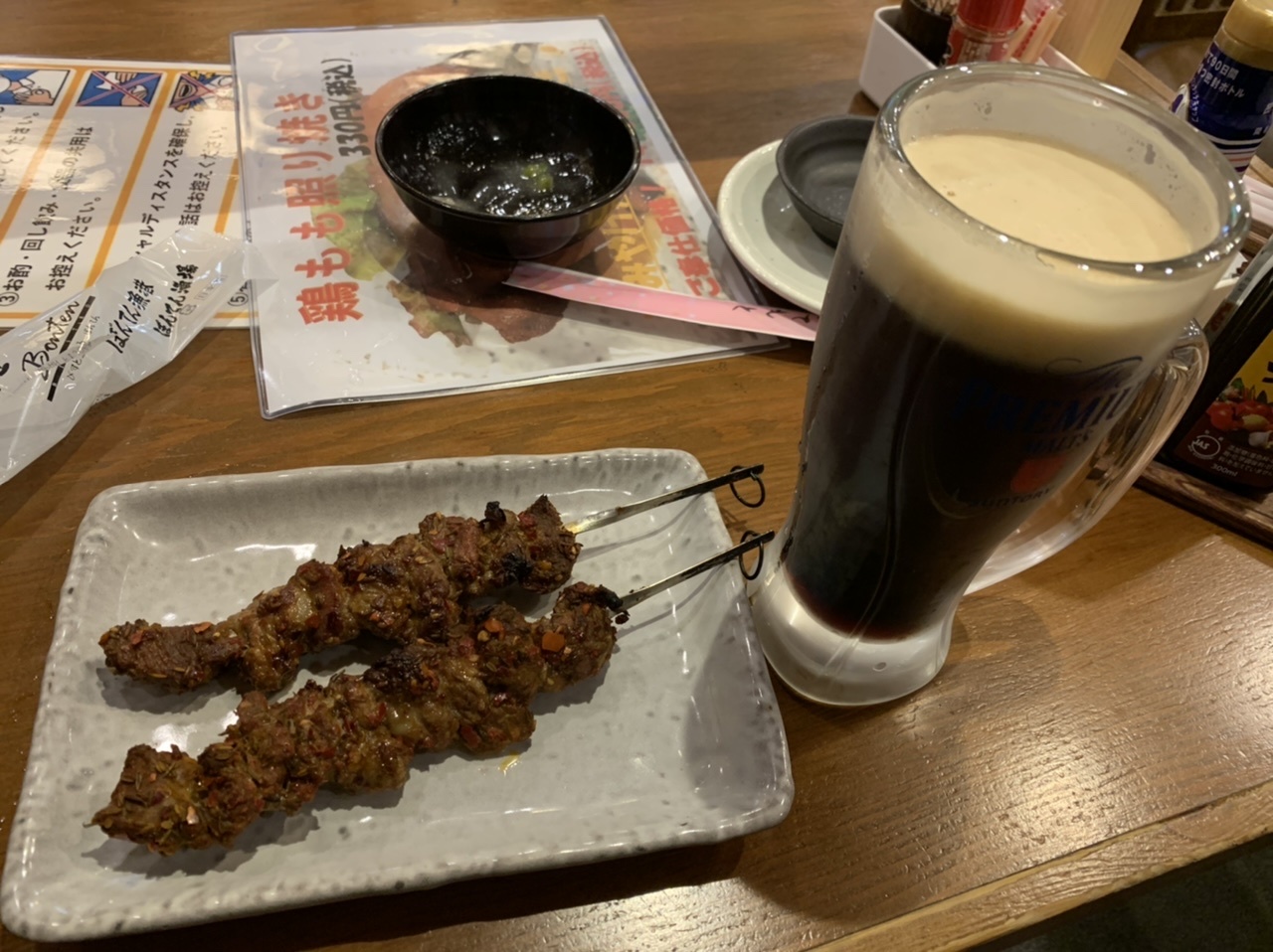 長町駅近くにある居酒屋です。一人で飲んでいきました。羊の串焼きをツマミに生ビール、ハーフ&ハーフ、黒ビールと三杯も飲んでしまいました。羊の串焼きは肉感がとてもいいです。