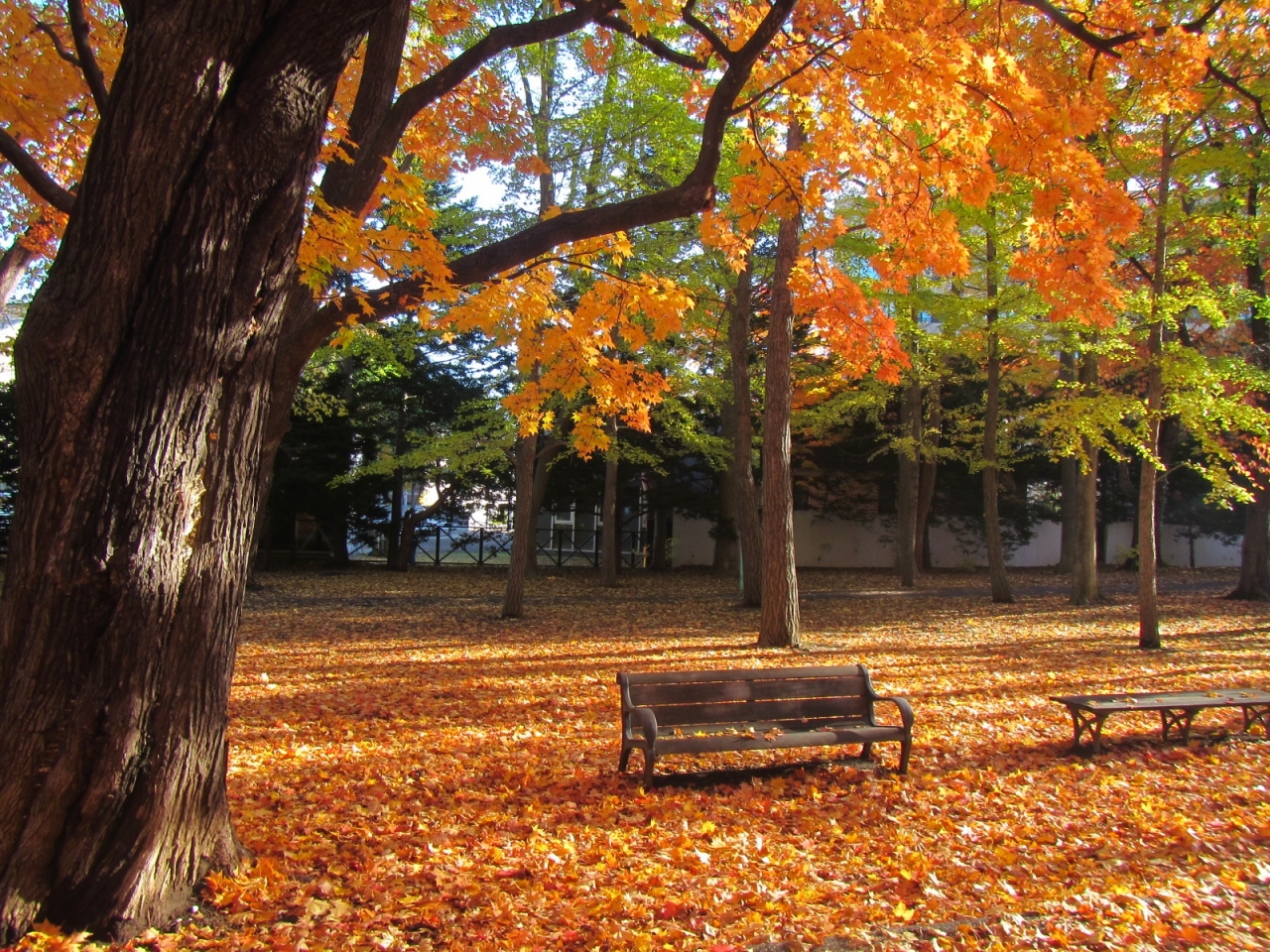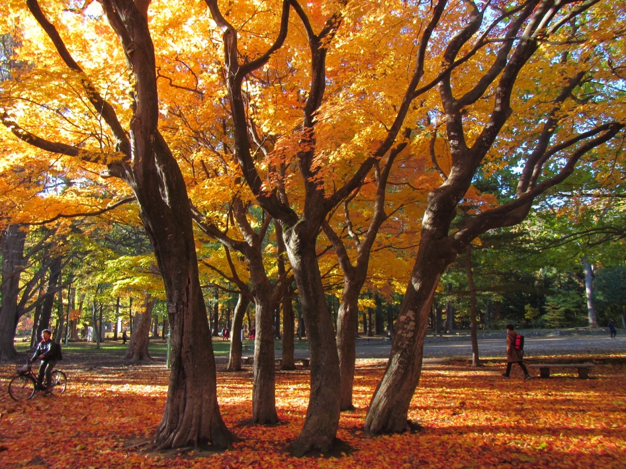 10月下旬、紅葉がきれいな円山公園ですが、10月末に訪れたところ、いよいよ園内の紅葉がクライマックスを迎え、園内に彩りが赤や黄、茶色にだいぶ進んでいました。