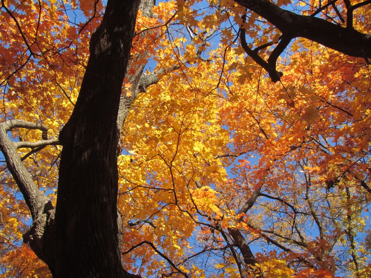 10月末、紅葉クライマックスで朝の散歩が気持ち良い