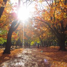 朝は散歩やジョギングにてき面な公園で特に週末は多くの人を見かけます。