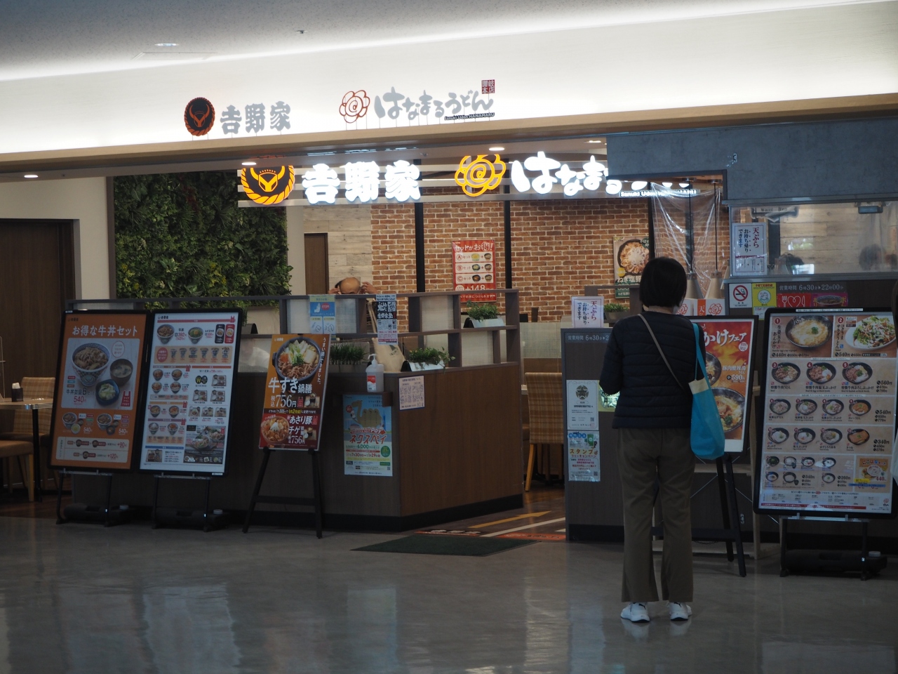 福岡空港の国内線ターミナルにあるはなまるうどんです。吉野家との共同店舗のようになっています。はなまるは全国チェーンの有名店ですが、注文から食事ができるのが早い、値段がリーズナブル、おいしいと時間が限られる空港では便利な店です。