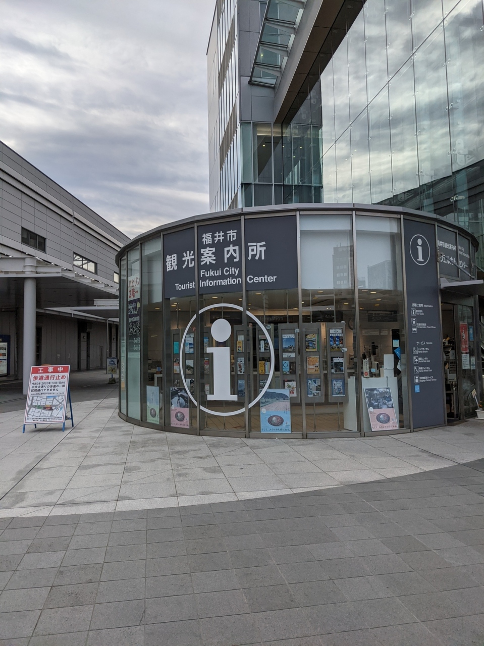 JR福井駅前(西口)の複合商業施設(ハピリン)にある観光案内所です。福井県内の観光スポットのチラシやパンフレットなどを無料でもらうことができます。また、行きたい観光スポットについては、スタッフの方に聞くと交通手段などを丁寧に教えてくれるので、観光前に立ち寄ってみてください。