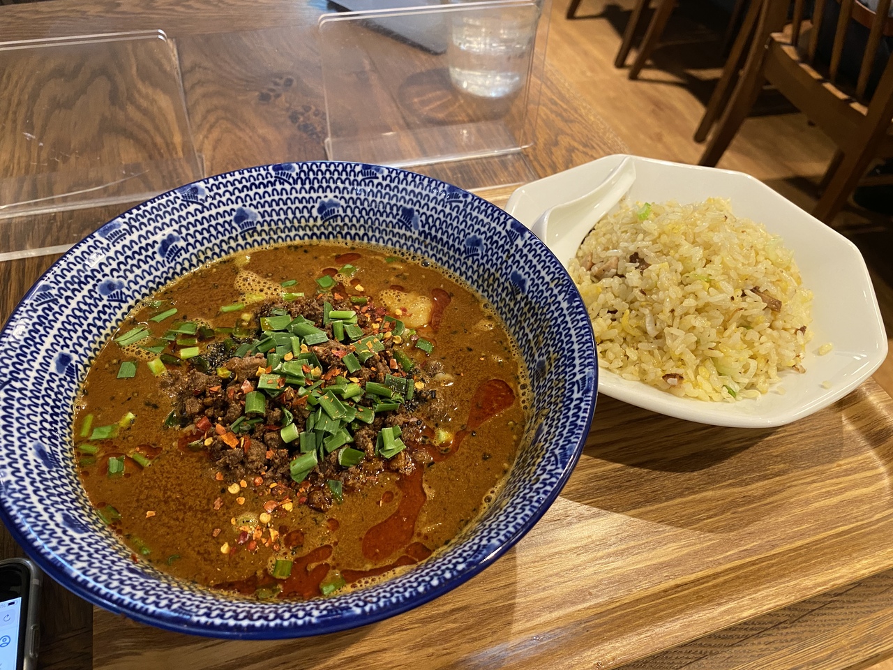 池袋のサンシャインにある中華料理屋さんです。ランチでは坦々麺と半チャーハンが880円で頼めるのでお得です。この日は坦々麺を注文。麺は刀削麺で中国本場の味。スープも本格的で、破格の組み合わせだと思いました。