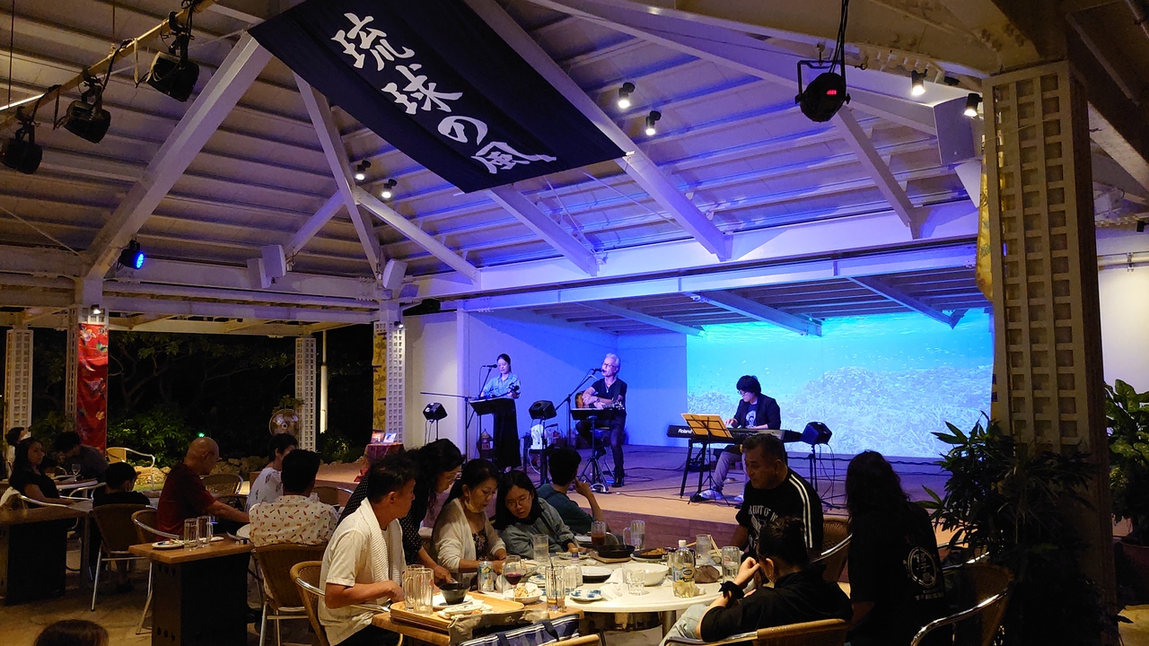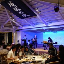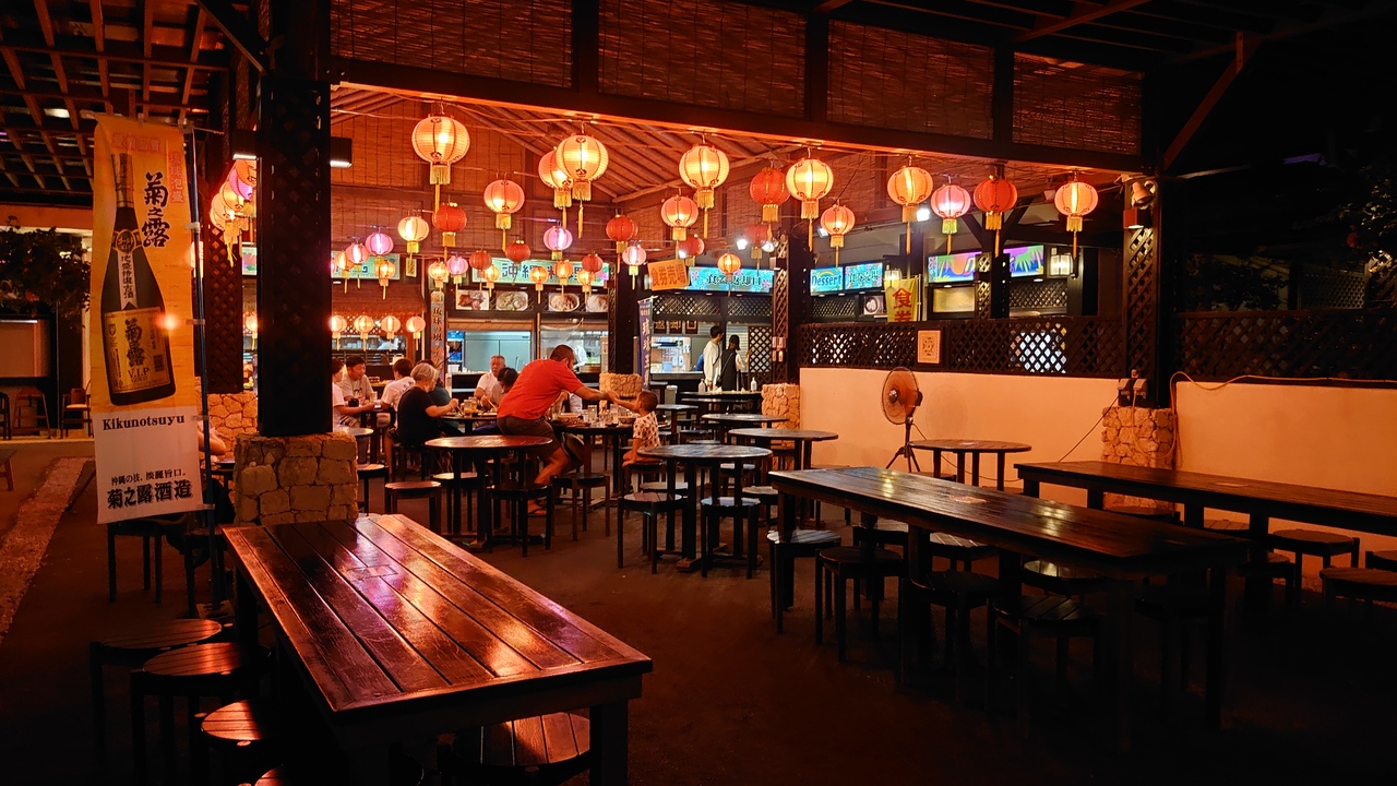 到着日はレストランでの夕飯後に屋台村に立ち寄りました。たくさんのテーブルにランタンの明かりは雰囲気があり良かった。歌謡ステージ前の客席はほぼ満席で、家族連れやグループがお料理や音楽を楽しんでました。私たちはお土産館に入りましたが、クロスマーケットのようなコンセプトはないけど手頃な値段のものも多く買いやすい印象でした。