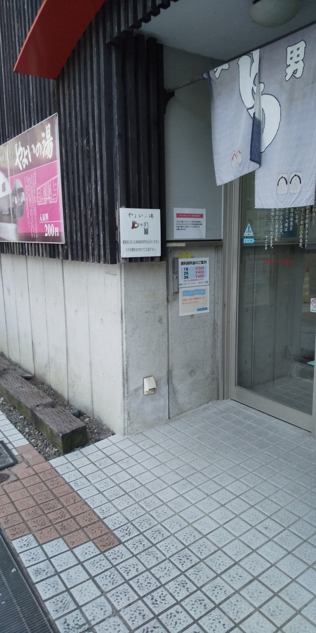 200円を投入すると自動ドアがあきますので小銭が必要。両替機もなく隣のコインランドリーは別で利用者以外両替お断りと書いてありました