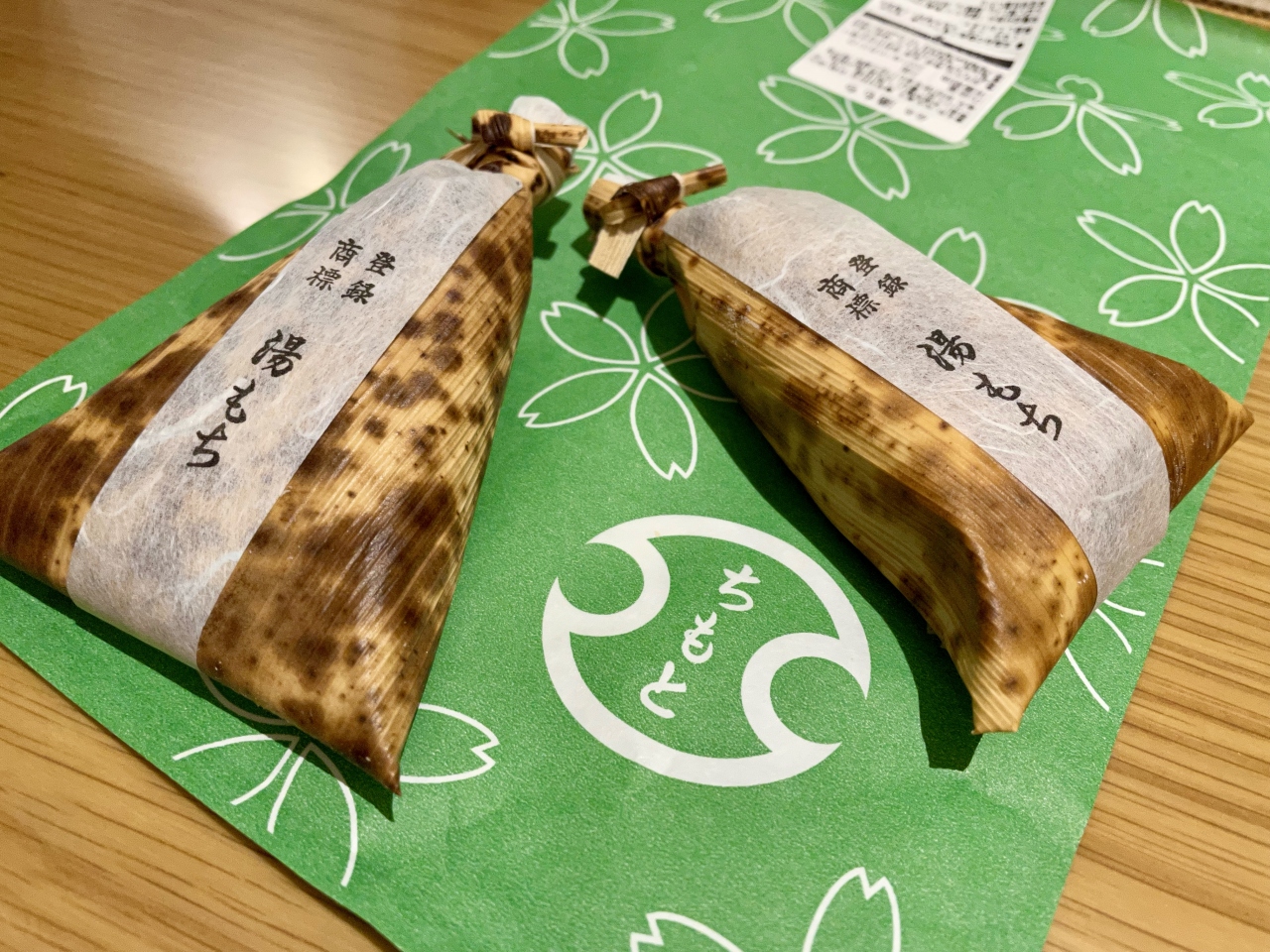 この店の名物の「湯もち」を購入。たかがお餅1個にこれほどの値段がするものかと当初は思っていましたが、なるほど値段以上の価値があります。